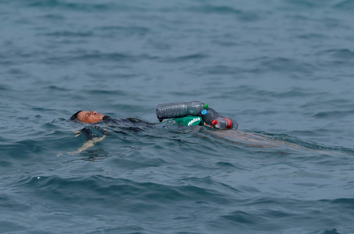 The boy attracted international media attention as he floated in a dark T-shirt with the bottles under his clothes and attached to his arms, crying as he reached the beach only to be led away by soldiers.