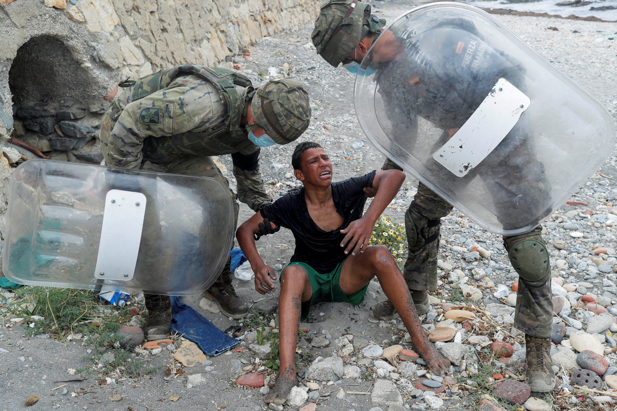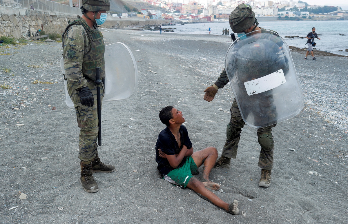 The boy was one of some 8,000 migrants who swam or climbed over a border fence into the enclave this week after Rabat relaxed border controls. Spain has deployed troops to Ceuta to patrol the border with Morocco and called the situation a crisis for Europe.