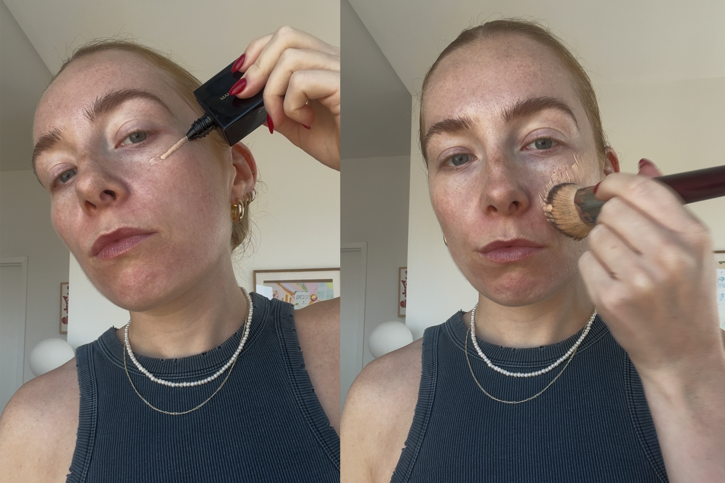 When testing, I kept all of my usual skincare the same: Elemis pro-collagen serum followed by Tatcha’s the water cream, Kate Somerville’s SPF, and Charlotte Tilbury’s setting spray. As per the brand’s recommendation, I applied the drops using a brush. But I also tested how it applied when I used my fingers and a damp Beauty Blender. I considered the following: