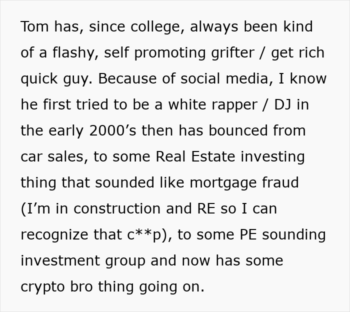 The host, a successful businessman and philanthropist, had invited former classmates to his property, but among the attendees was a crypto bro who decided to use the opportunity and lure him into his latest scheme.