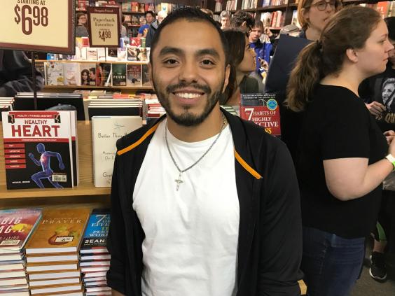 Juan Cuba, a teacher's assistant from New Jersey, was one of the first people in line. He had arrived at 4pm the day before and slept on the street, without a sleeping bag or pillow. During the campaign, he had donated to Ms Clinton every month.