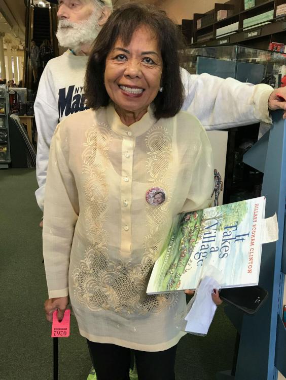 Pura Molina, a 64-year-old resident of Virginia, had come in on the midnight bus to make the event. In a bag, she brought her barong tagalong – a kind of Filipino formal dress that she hoped to wear when she met Ms Clinton.