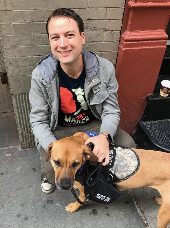 ‘In the military, when you mess up, you better learn how to get it right,” he said, stroking his dog, Harley Quinn, who he keeps by his side in case of flashbacks.