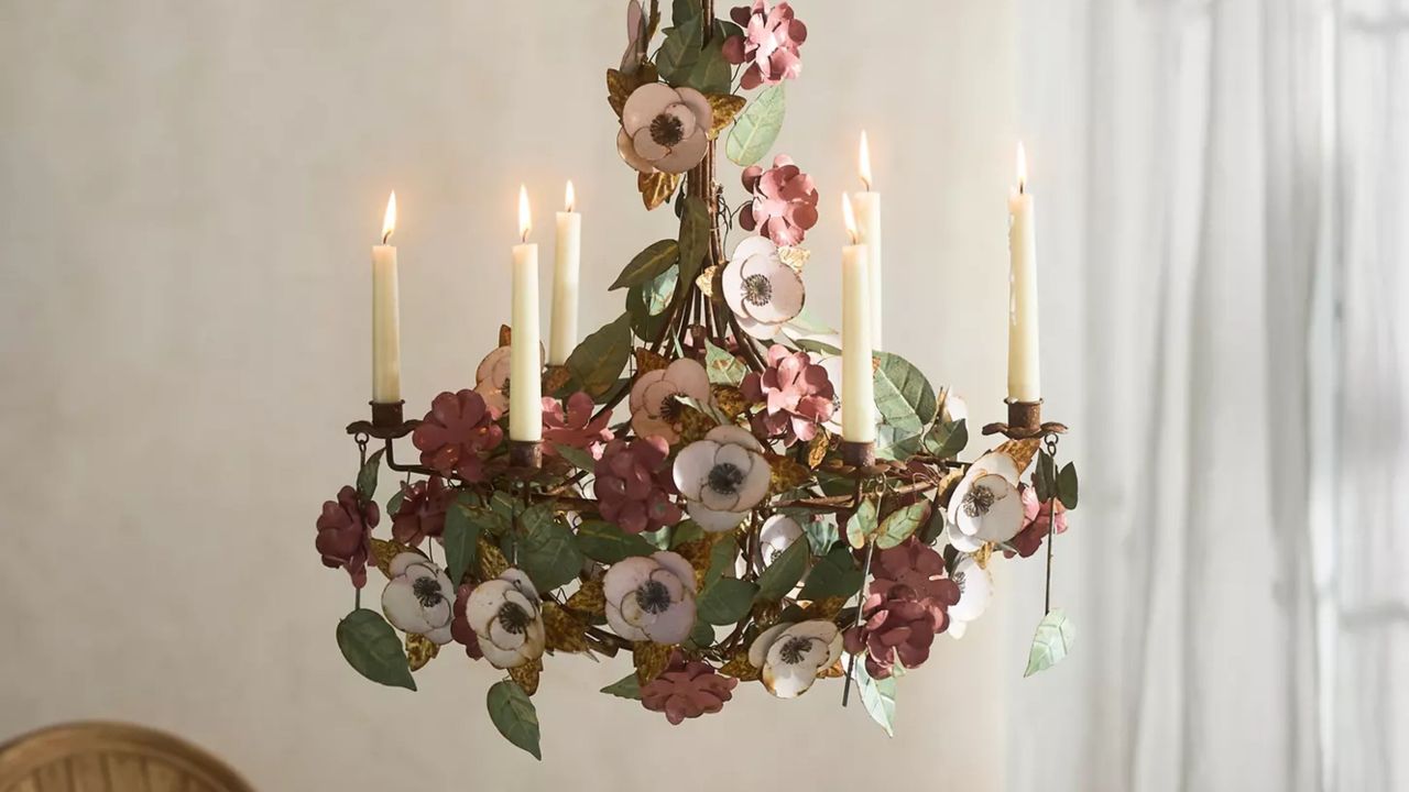 I, like seemingly everyone else on the planet, am obsessed with candle sconces. Since I rent (and refuse to call an electrician) I’ve leaned hard on tapers for their swanky, cinematic glow. Recently, though, I found what feels like their big sister: the Dream Floral Chandelier by Terrain.