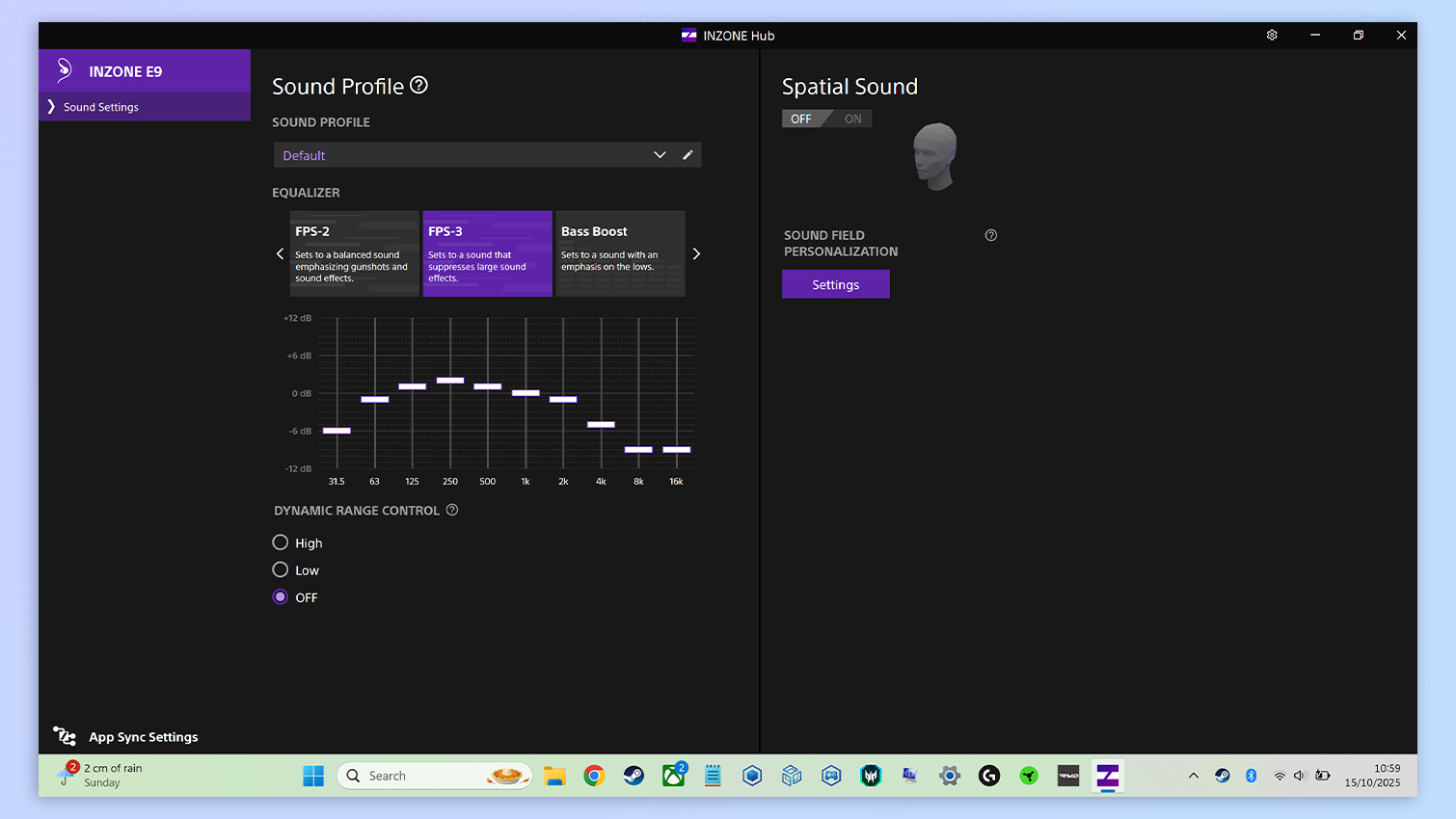 On top of the fantastic sound quality in FPS games, the Sony Inzone E9s are customizable via Inzone Hub, available to download for free on Windows machines. Inzone Hub sports a clean user interface with no unnecessary pop-ups or ads, and everything is clearly signposted.