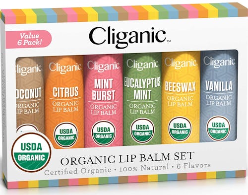 Chapped lips are no match for this set of organic balms. Beeswax and vitamin E work to hydrate and protect lips from further dehydration, while sunflower seed oil delivers a nourishing dose of antioxidants. Each order comes with six flavors: mint, citrus, beeswax, eucalyptus mint, vanilla, and coconut.