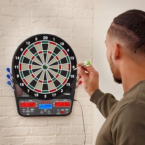 Not only is this dart board a fun way to spend time with family, but it also keeps score electronically — so there’s no need to bust out a pad of paper and pencil. Each order comes with six darts included. And unlike some boards, this one features an extended catch ring to help guide darts into the board so that they don’t bounce off.
