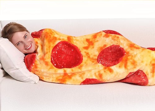 This throw blanket is one of those rare items that’s sure to bring a smile to just about anybody’s face. It’s made from soft flannel fabric, and the pizza print is on both sides — so it doesn’t matter which one is facing up. And if you don’t like pizza? You can also grab it as a tortilla, waffle, or cookie.