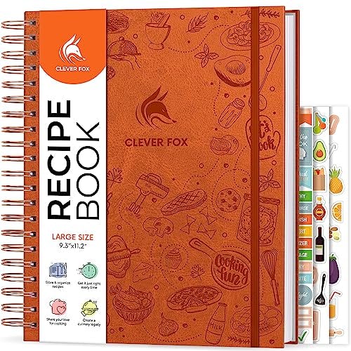 Clever Fox Recipe Book Spiral – Blank Family Cookbook – Empty Cooking Journal – Notebook Organizer to Write In Recipes – Large (Orange)