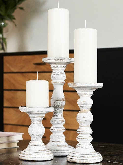 Amazon -Add a touch of elegance to candles by placing them on these holders. The farmhouse style gives them a rustic vibe that’s sure to look good in just about any home. And since each holder is handmade by artisans in India, you can rest assured that no two pieces are the same — so you’ll have a set that’s completely unique to you.