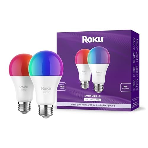 Roku Smart Light Bulbs (Color, 2-Pack) - Dimmable A19 Color Lightbulbs with Adjustable Brightness & Temperature - WiFi Smart Bulbs Works Voice, Alexa & Google Assistant - Smart Home Products
