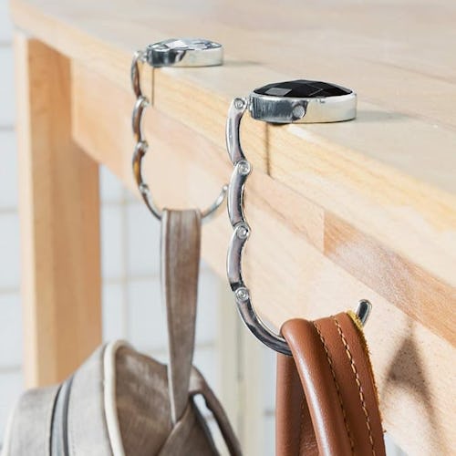 Purse hooks are becoming more and more popular, and this set is bound to impress. Foldable with a magnetic closure, they’re easy to store and use while out and about. With a decorative diamond design that adds a little sparkle, they’re a great way to get your purse off the floor while making it more visible to you.