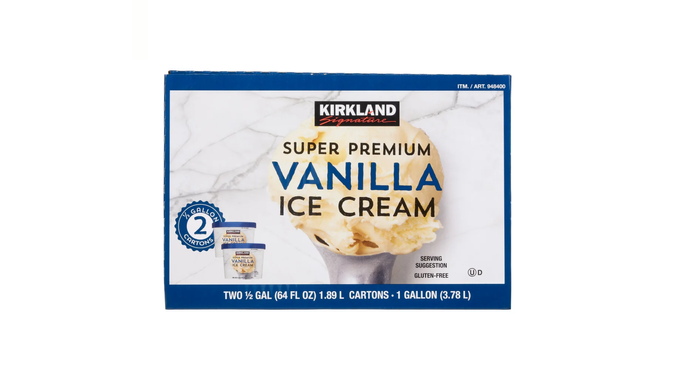 The Kirkland Signature super premium vanilla ice cream is made with top-notch ingredients that shoppers appreciate and love, but the high cost is an issue. A 128-oz tub typically costs around $14 to $18 for a two-half-gallon pack at Costco or Instacart, though prices vary slightly by location and retailer.