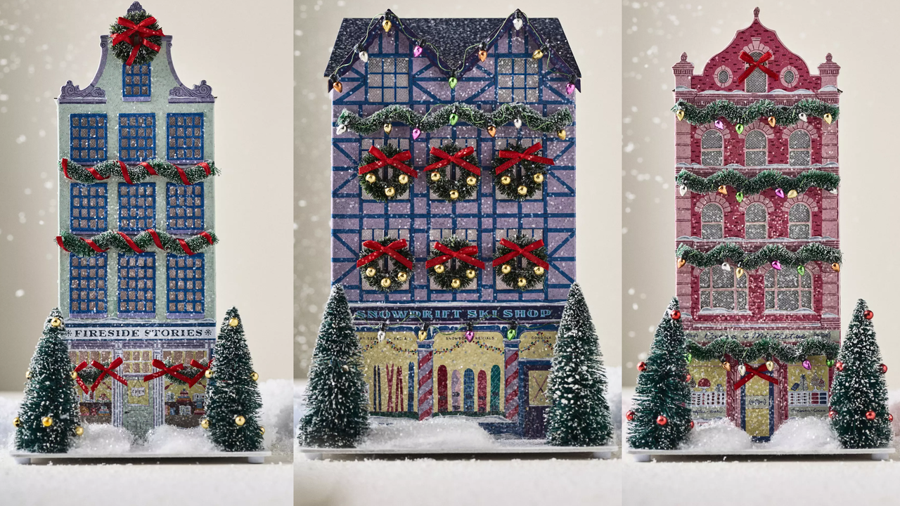 The Emily Taylor Christmas village houses are exclusive to Anthropologie, each painted by hand, and inspired by the historic buildings of Western Europe and old Toronto.