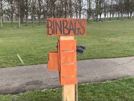 Jack Colmer designed, built and installed a home-made bin dispenser in Leeds’s popular Woodhouse Moor green space in the city’s Hyde Park area.