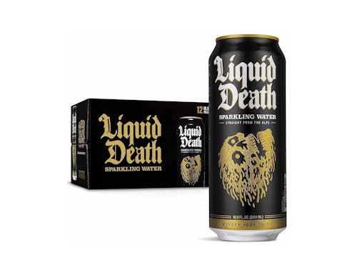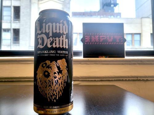 Recently, I’ve really been into Liquid Death for these kinds of settings. Yes, the “Ed Hardy of water.”
