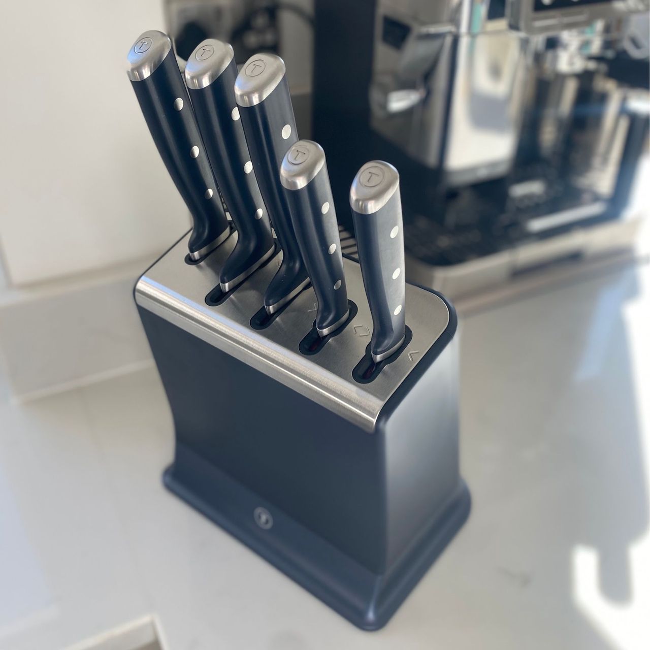The handles to the knives feel extremely premium, while the block makes for a streamlined addition to my worktop. A feature I really like is the grippy feet on the bottom of the unit, which makes it feel properly weighty and not possible to be knocked out of place. It also comes with a ten year guarantee.