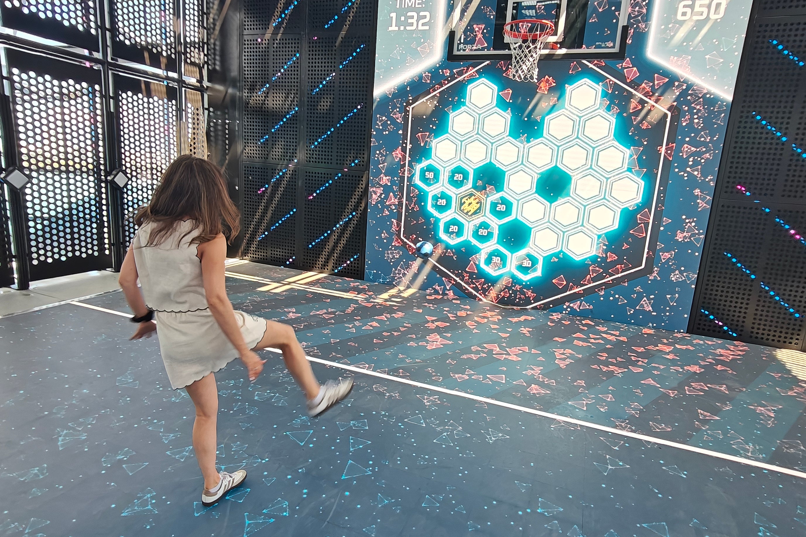But we equally embraced our inner child on the new Moon Climber assault course, where we raced through nets, batting digital screens to chase aliens before finishing by going down a slide that just about had room for me.
