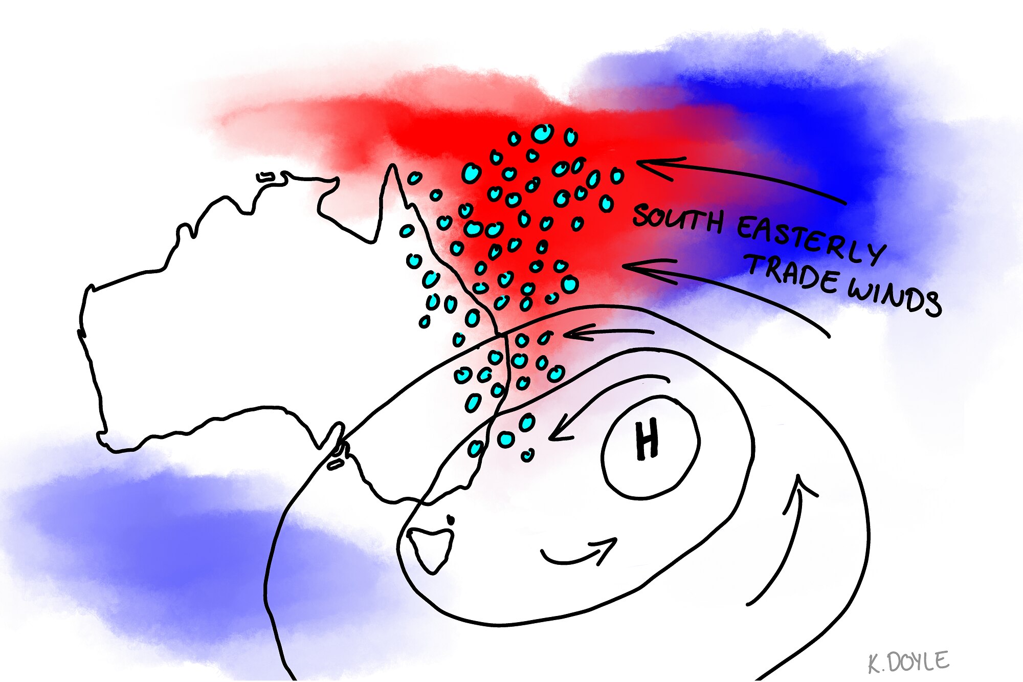 "Those trade winds then push warm water over northern Australia, where all the moisture is piled up, and that is driving all the rain."