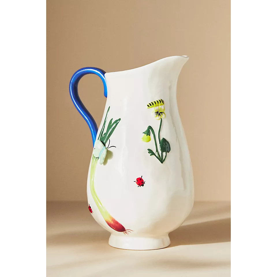 The Faye pitcher, now over $12 off, is a top-rated buy that captures the viral Garden Girl aesthetic perfectly. Ideal for a pitcher of crisp lemonade and a meal spent outside.
