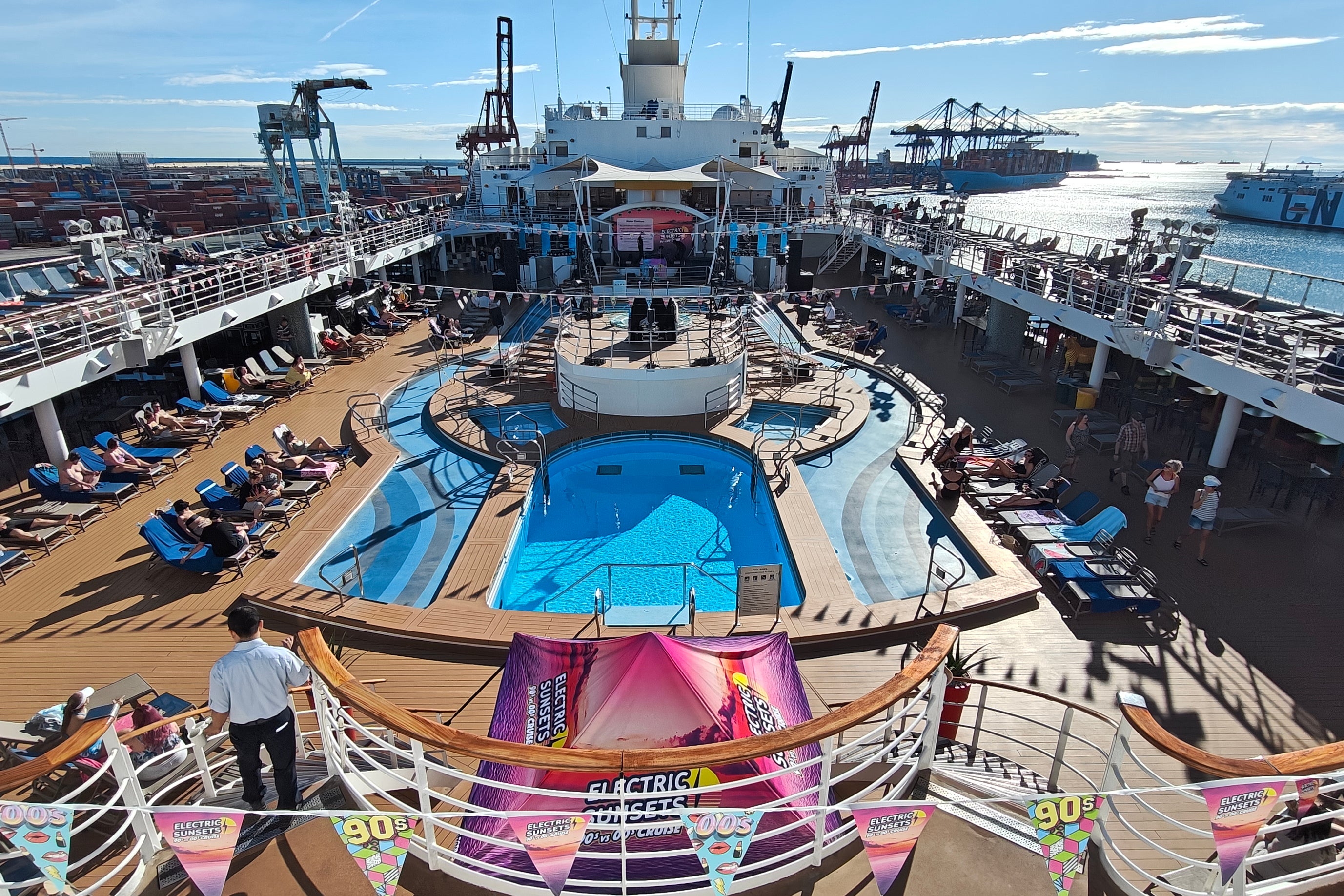 Instead, we were preparing to board Marella Voyager and sail back to the 1990s and 2000s on its three-night “Electric Sunsets” cruise.
