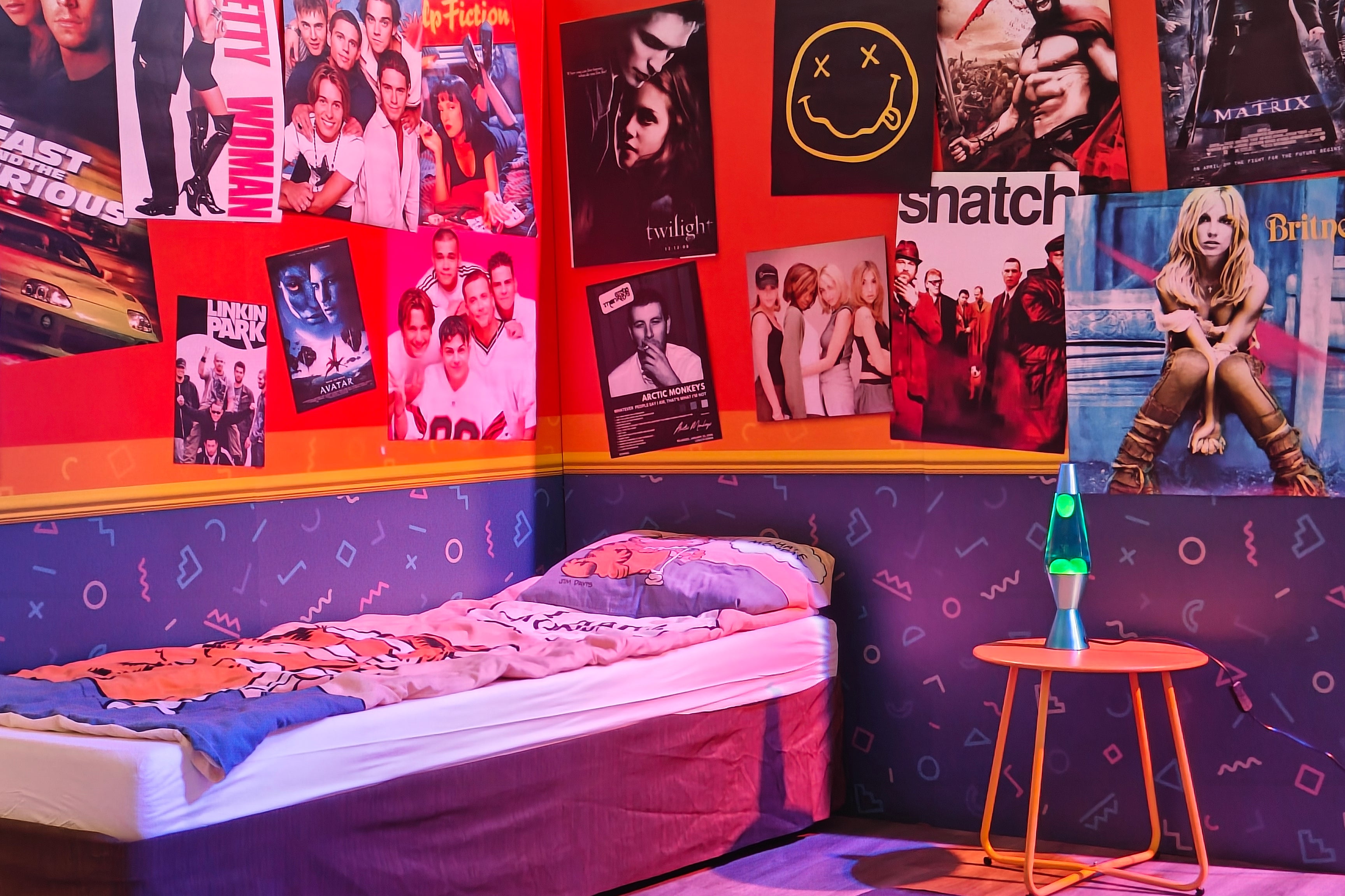 Modern-day coffee in hand, the atrium transported me back in time. Here, there was a teenage bedroom, complete with hopefully-washed Garfield sheets, Nirvana posters on every wall, and a glowing lava lamp. It was the perfect setting for a picture, without a dirty dish in sight.