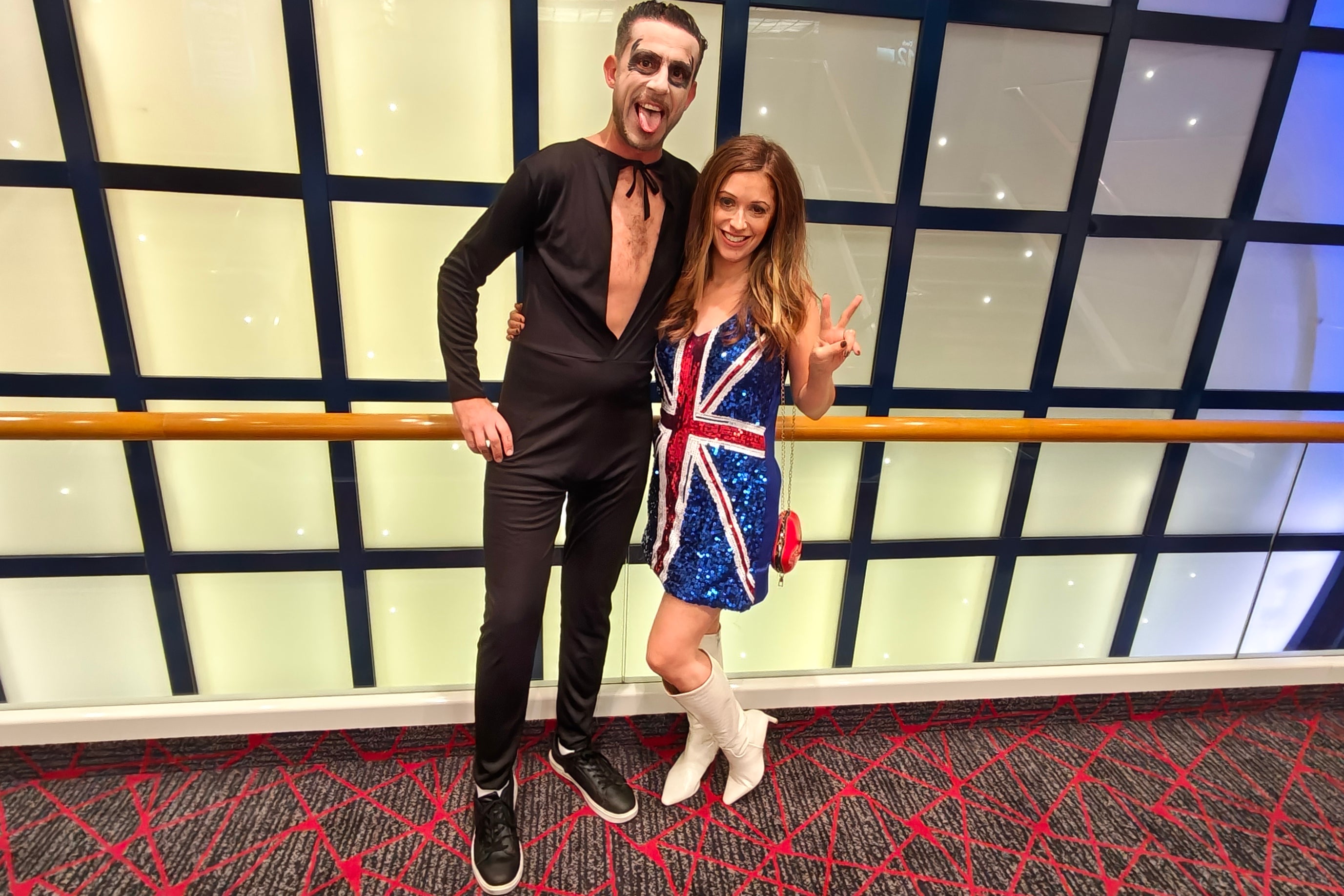 The ship provided plenty of inspiration for outfits, as public areas were decorated with cardboard cut-outs of nostalgic favourites, such as characters from Baywatch, Gladiators and even Only Fools and Horses.