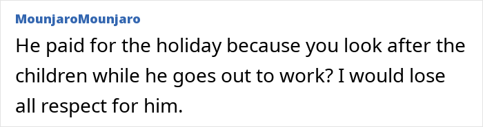 As Dr. Lemle explained, it typically happens when one person keeps track of their accumulated sacrifice and selectively mentions it to “extract a specific repayment.” In this story, the husband played the “I paid for the trip” card to have his wife bear all obligations to care for their children.