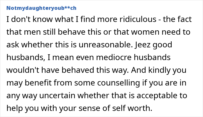 Most commenters sided with the author and didn’t hold back in their critiques of the husband