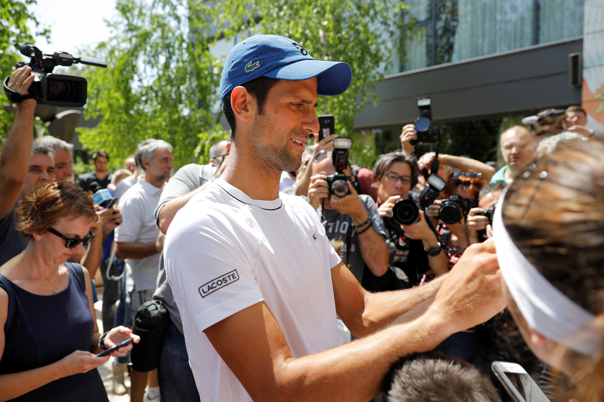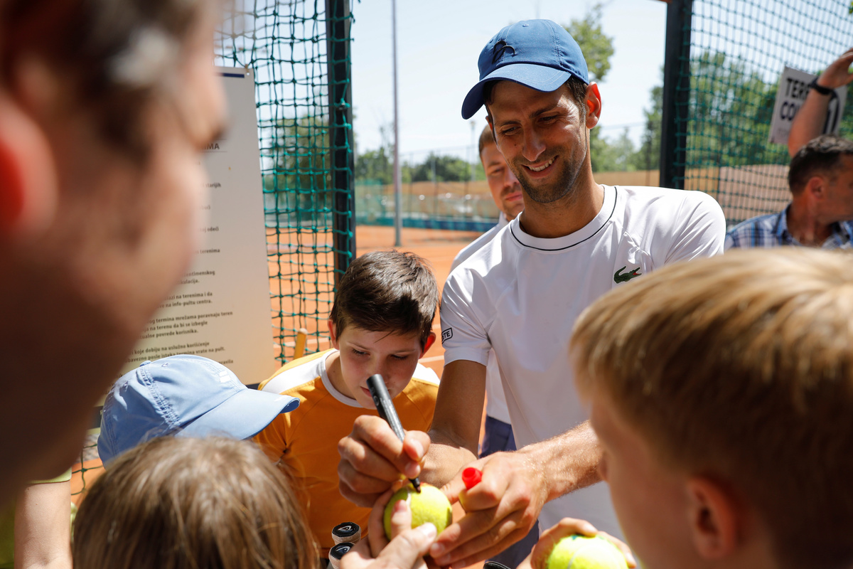 Mobbed by primary school children as he posed with them for photos after the claycourt practice session, Djokovic cut a relaxed and confident figure ahead of upcoming tournaments.