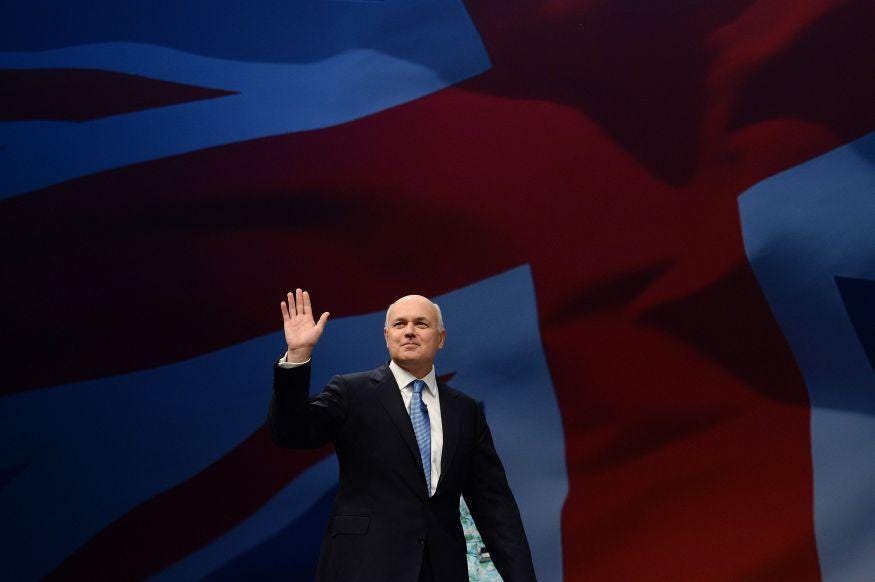In his wide-ranging speech, Mr Duncan Smith also criticised the old Employment Support Allowance benefit for signing people off work when they were judged by doctors as too sick to work.