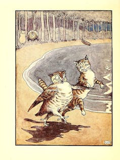 Roland’s granddaughter Stephanie enters late in the novel. As a new character, she permits fresh returns. Their shared story-within-the-story is Edward Lear’s The Owl and the Pussycat – a “beautiful impossible adventure” – which Roland had read to his son Lawrence, who in turn reads it to his seven-year-old daughter. Stephanie begins to learn and recite the poem during a COVID lockdown.