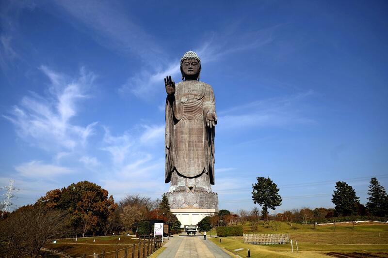 In fact, the 15-meter-high Great Buddha of Nara would probably slip snugly into one of the 18-meter-wide palms of the Ushiku Buddha.