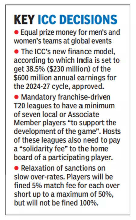 NEW DELHI: In a landmark decision, the International Cricket Council (ICC) on Thursday has declared that men's and women's teams competing in ICC events will receive equal prize money.