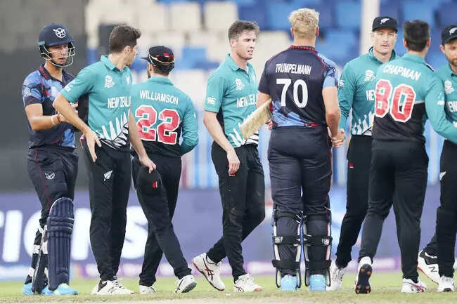 But Namibia pegged the Kiwis back by sending both the openers to the dressing room. First Wiese broke the 30-run opening stand by dismissing Guptill and then Scholtz dismissed Mitchell, who was caught in the deep by Michael van Lingen in the seventh over, as the Kiwis slipped to 43/2.