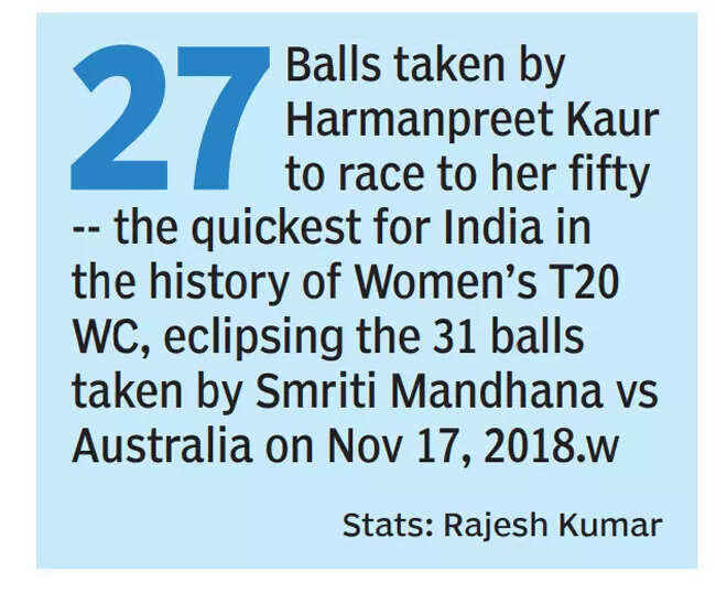 After a five-match lull, Harmanpreet fired up her cold bat when it was most needed. Harmanpreet’s unbeaten 27-ball 52 (8x4; 1x6), along with a fine 98-run opening stand between Shafali Verma and Smriti Mandhana, ensured India posted a competitive 172/3, the highest team total in the tournament so far.