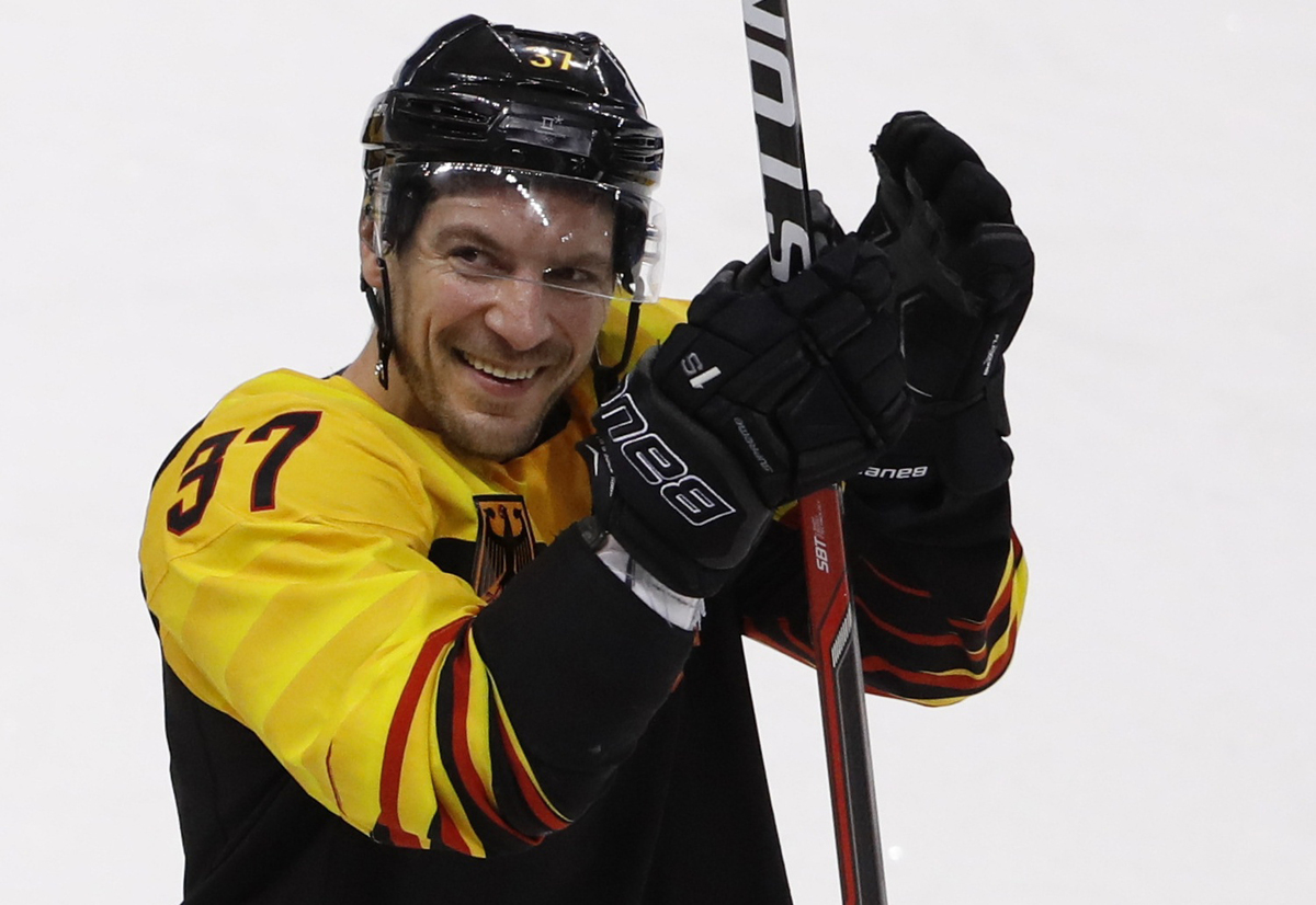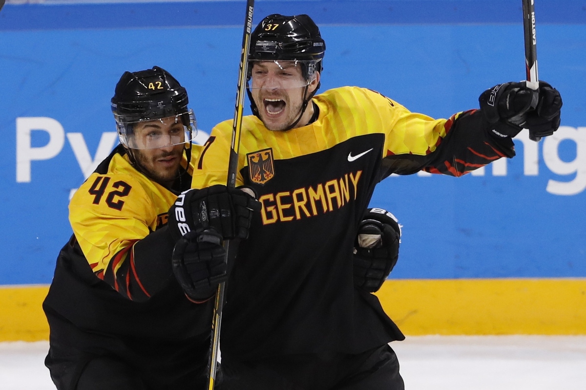FILE PHOTO - Ice Hockey - Pyeongchang 2018 Winter Olympics - Men's Quarterfinal Match - Sweden v Germany - Kwandong Hockey Centre, Gangneung, South Korea - February 21, 2018 - Patrick Reimer of Germany celebrates at the end of the match. REUTERS/Kim Kyung-HoonIce Hockey - Pyeongchang 2018 Winter Olympics - Men's Quarterfinal Match - Sweden v Germany - Kwandong Hockey Centre, Gangneung, South Korea - February 21, 2018 - German coaches celebrate after the match. REUTERS/Kim Kyung-HoonIce Hockey - Pyeongchang 2018 Winter Olympics - Men's Quarterfinal Match - Sweden v Germany - Kwandong Hockey Centre, Gangneung, South Korea - February 21, 2018 - Christian Ehrhoff and goalie Danny aus den Birken of Germany celebrates after the match. REUTERS/Grigory DukorIce Hockey - Pyeongchang 2018 Winter Olympics - Men's Quarterfinal Match - Sweden v Germany - Kwandong Hockey Centre, Gangneung, South Korea - February 21, 2018 - Marcel Noebels of Germany celebrates as Viktor Stalberg of Sweden and Viktor Fasth of Sweden look dejected after Patrick Reimer of Germany scored their fourth goal to win the match. REUTERS/Kim Kyung-Hoon