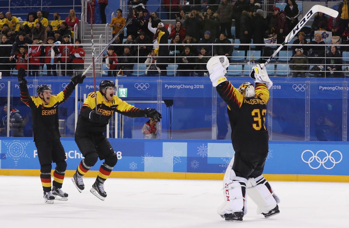 GANGNEUNG, South Korea (Reuters) - Germany shocked top-seeded Sweden 4-3 in overtime on Wednesday, beating the Swedes for the first time ever in Olympic play and booking a spot in the semi-final round of the men's ice hockey tournament.