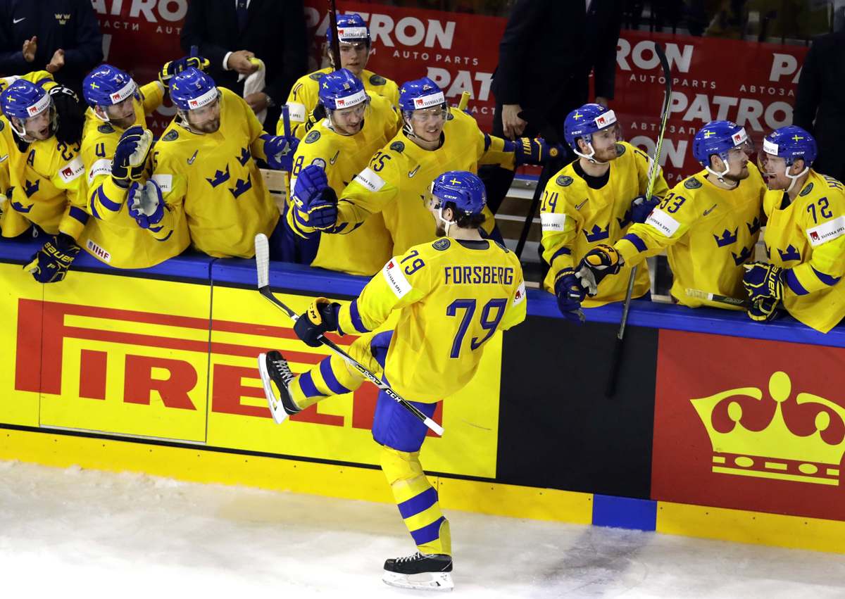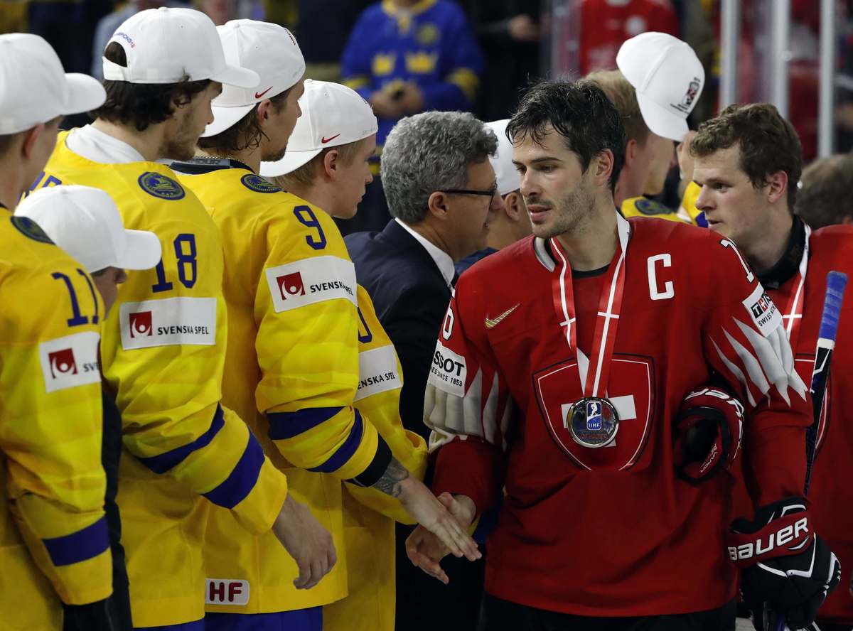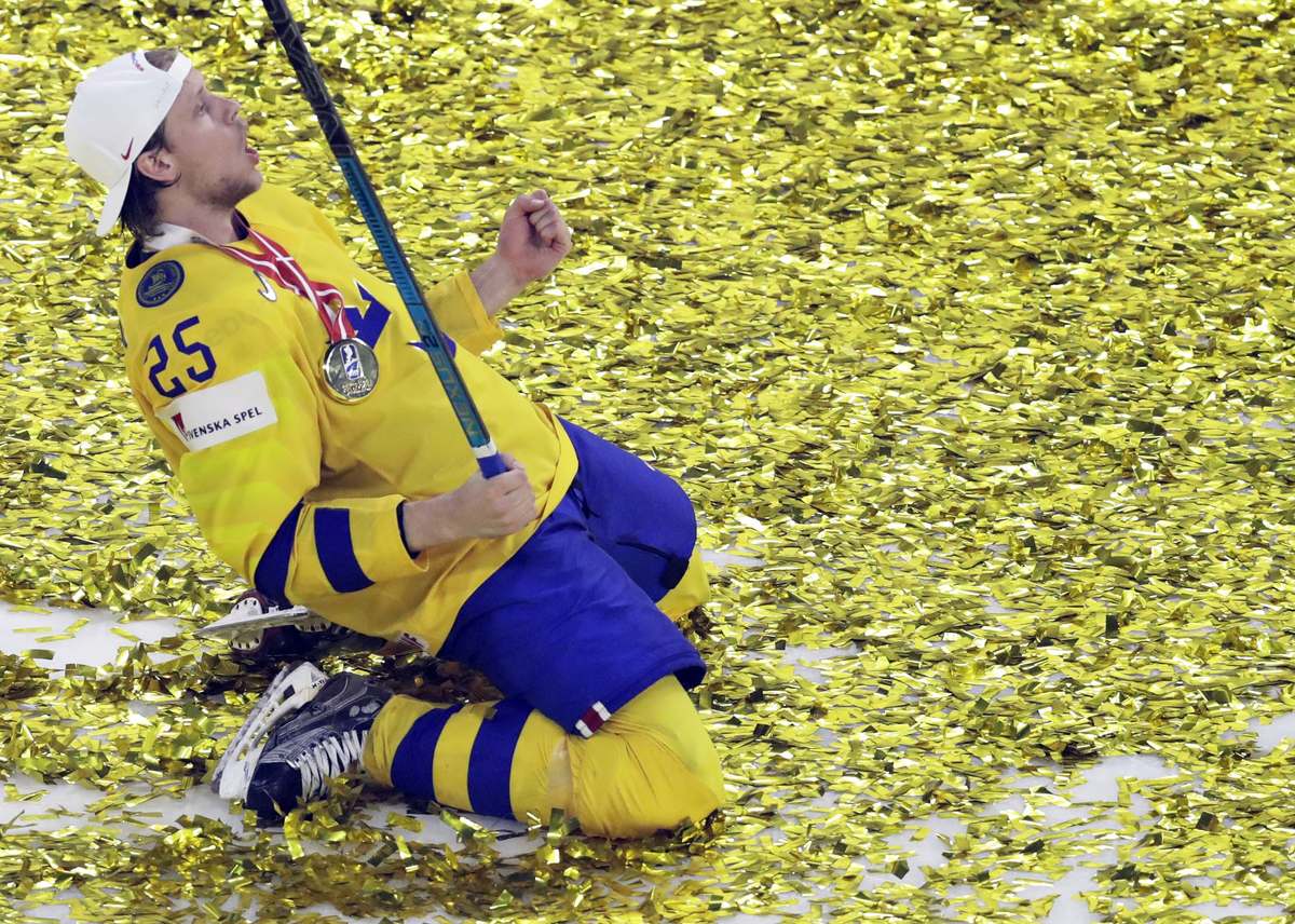 Ice Hockey - 2018 IIHF World Championships - Gold Medal Match - Sweden v Switzerland - Royal Arena - Copenhagen, Denmark - May 20, 2018 - Team Sweden hold a trophy after winning a gold medal. REUTERS/Grigory DukorIce Hockey - 2018 IIHF World Championships - Gold Medal Match - Sweden v Switzerland - Royal Arena - Copenhagen, Denmark - May 20, 2018 - Filip Forsberg of Sweden celebrates after scoring during the penalty shootout. REUTERS/David W CernyIce Hockey - 2018 IIHF World Championships - Gold Medal Match - Sweden v Switzerland - Royal Arena - Copenhagen, Denmark - May 20, 2018 - Mikael Backlund of Sweden holds a trophy after winning a gold medal. REUTERS/Grigory DukorIce Hockey - 2018 IIHF World Championships - Gold Medal Match - Sweden v Switzerland - Royal Arena - Copenhagen, Denmark - May 20, 2018 - Filip Forsberg of Sweden celebrates after winning the gold medal. REUTERS/David W CernyIce Hockey - 2018 IIHF World Championships - Gold Medal Match - Sweden v Switzerland - Royal Arena - Copenhagen, Denmark - May 20, 2018 - Team Sweden celebrate after winning the gold medal. REUTERS/David W CernyIce Hockey - 2018 IIHF World Championships - Gold Medal Match - Sweden v Switzerland - Royal Arena - Copenhagen, Denmark - May 20, 2018 - Players shake hands after the match. REUTERS/Grigory DukorIce Hockey - 2018 IIHF World Championships - Gold Medal Match - Sweden v Switzerland - Royal Arena - Copenhagen, Denmark - May 20, 2018 - Goaltender Leonardo Genoni of Switzerland reacts after conceding a goal by Filip Forsberg of Sweden during the penalty shootout. REUTERS/David W CernyIce Hockey - 2018 IIHF World Championships - Gold Medal Match - Sweden v Switzerland - Royal Arena - Copenhagen, Denmark - May 20, 2018 - Goaltender Leonardo Genoni of Switzerland looks dejected after losing a match. REUTERS/Grigory DukorIce Hockey - 2018 IIHF World Championships - Gold Medal Match - Sweden v Switzerland - Royal Arena - Copenhagen, Denmark - May 20, 2018 - Raphael Diaz of Switzerland and goaltender Magnus Hellberg of Sweden. REUTERS/Grigory DukorIce Hockey - 2018 IIHF World Championships - Gold Medal Match - Sweden v Switzerland - Royal Arena - Copenhagen, Denmark - May 20, 2018 - Filip Forsberg of Sweden celebrates with teammates after scoring. REUTERS/David W CernyIce Hockey - 2018 IIHF World Championships - Gold Medal Match - Sweden v Switzerland - Royal Arena - Copenhagen, Denmark - May 20, 2018 - Team Switzerland look dejected. REUTERS/David W CernyIce Hockey - 2018 IIHF World Championships - Gold Medal Match - Sweden v Switzerland - Royal Arena - Copenhagen, Denmark - May 20, 2018 - Team Switzerland look dejected after losing a match. REUTERS/Grigory DukorIce Hockey - 2018 IIHF World Championships - Gold Medal Match - Sweden v Switzerland - Royal Arena - Copenhagen, Denmark - May 20, 2018 - Rickard Rakell of Sweden and Nino Niederreiter of Switzerland in action. REUTERS/Grigory DukorIce Hockey - 2018 IIHF World Championships - Gold Medal Match - Sweden v Switzerland - Royal Arena - Copenhagen, Denmark - May 20, 2018 - Enzo Corvi of Switzerland in action with goaltender Anders Nilsson of Sweden during the penalty shootout. REUTERS/David W CernyIce Hockey - 2018 IIHF World Championships - Gold Medal Match - Sweden v Switzerland - Royal Arena - Copenhagen, Denmark - May 20, 2018 - Filip Forsberg of Sweden scores the deciding penalty. REUTERS/David W CernyIce Hockey - 2018 IIHF World Championships - Gold Medal Match - Sweden v Switzerland - Royal Arena - Copenhagen, Denmark - May 20, 2018 - Adam Larsson and Filip Forsberg of Sweden in action with Timo Meier and Dean Kukan of Switzerland. REUTERS/David W CernyIce Hockey - 2018 IIHF World Championships - Gold Medal Match - Sweden v Switzerland - Royal Arena - Copenhagen, Denmark - May 20, 2018 - Mirco Muller of Switzerland and John Klingberg and goaltender Anders Nilsson of Sweden in action. REUTERS/Grigory DukorIce Hockey - 2018 IIHF World Championships - Gold Medal Match - Sweden v Switzerland - Royal Arena - Copenhagen, Denmark - May 20, 2018 - Mikael Backlund of Sweden and Roman Josi and goaltender Leonardo Genoni of Switzerland in action. REUTERS/Grigory DukorIce Hockey - 2018 IIHF World Championships - Gold Medal Match - Sweden v Switzerland - Royal Arena - Copenhagen, Denmark - May 20, 2018 - Oliver Ekman-Larsson of Sweden. REUTERS/David W Cerny