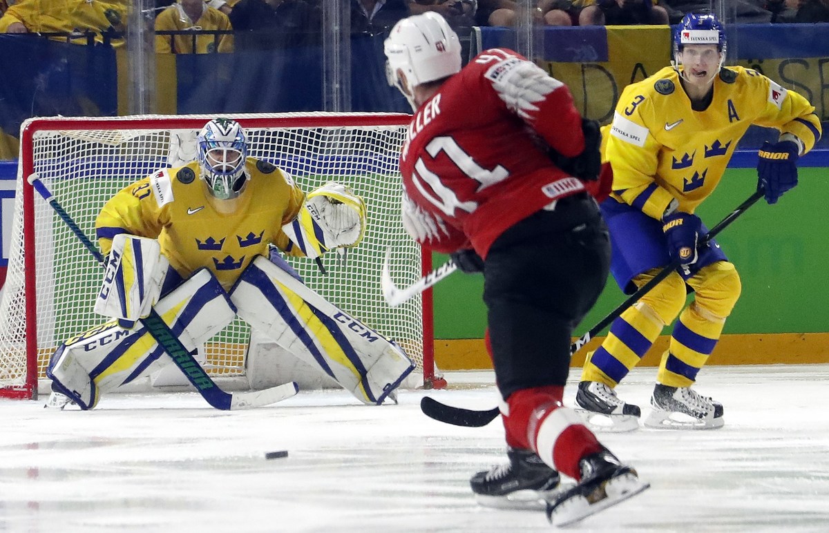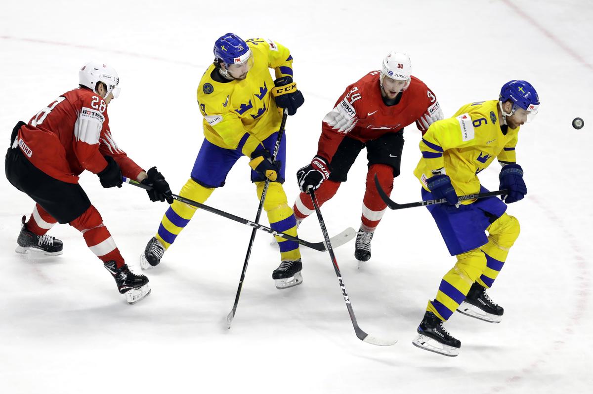 With all the pressure on hot favourites Sweden, the Swiss took the lead late in the first period through Nino Niederreiter but Gustav Nyquist rifled the puck into the top corner to level within a minute.
