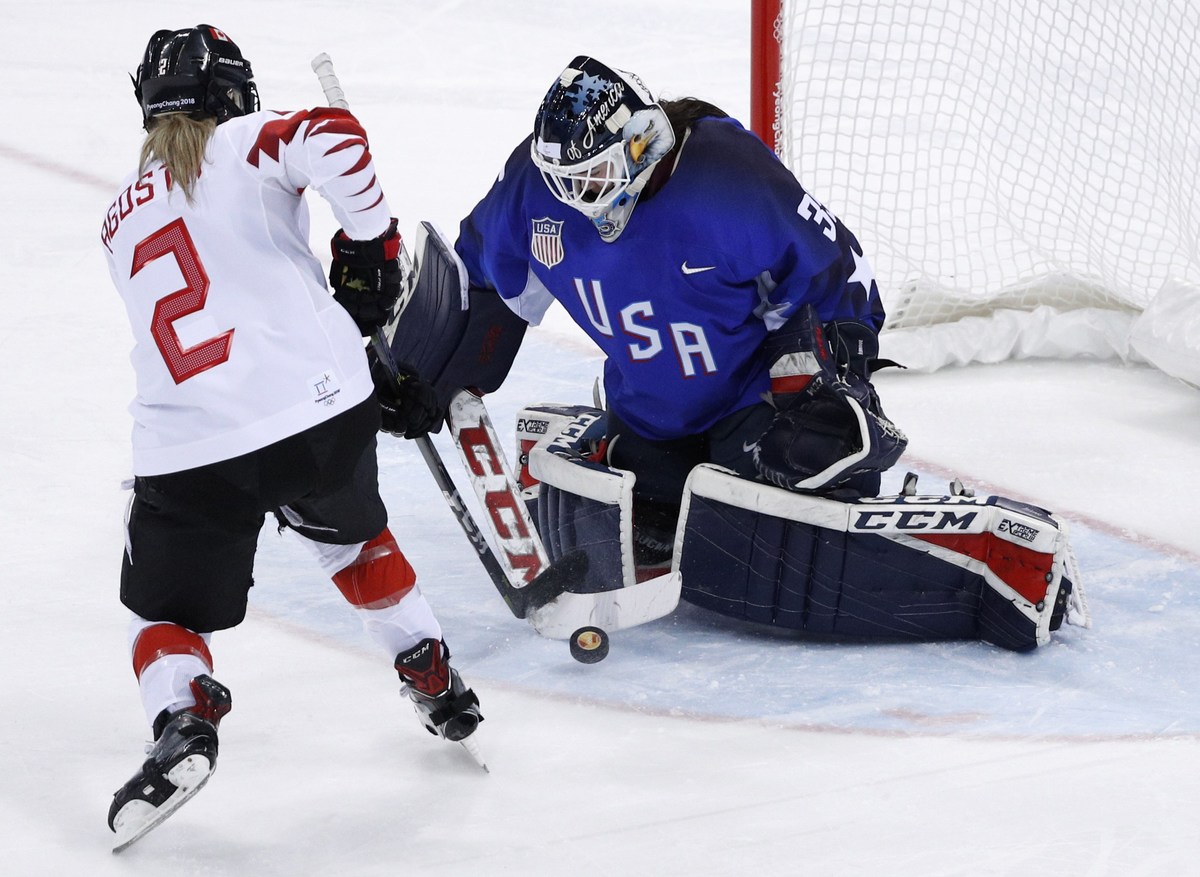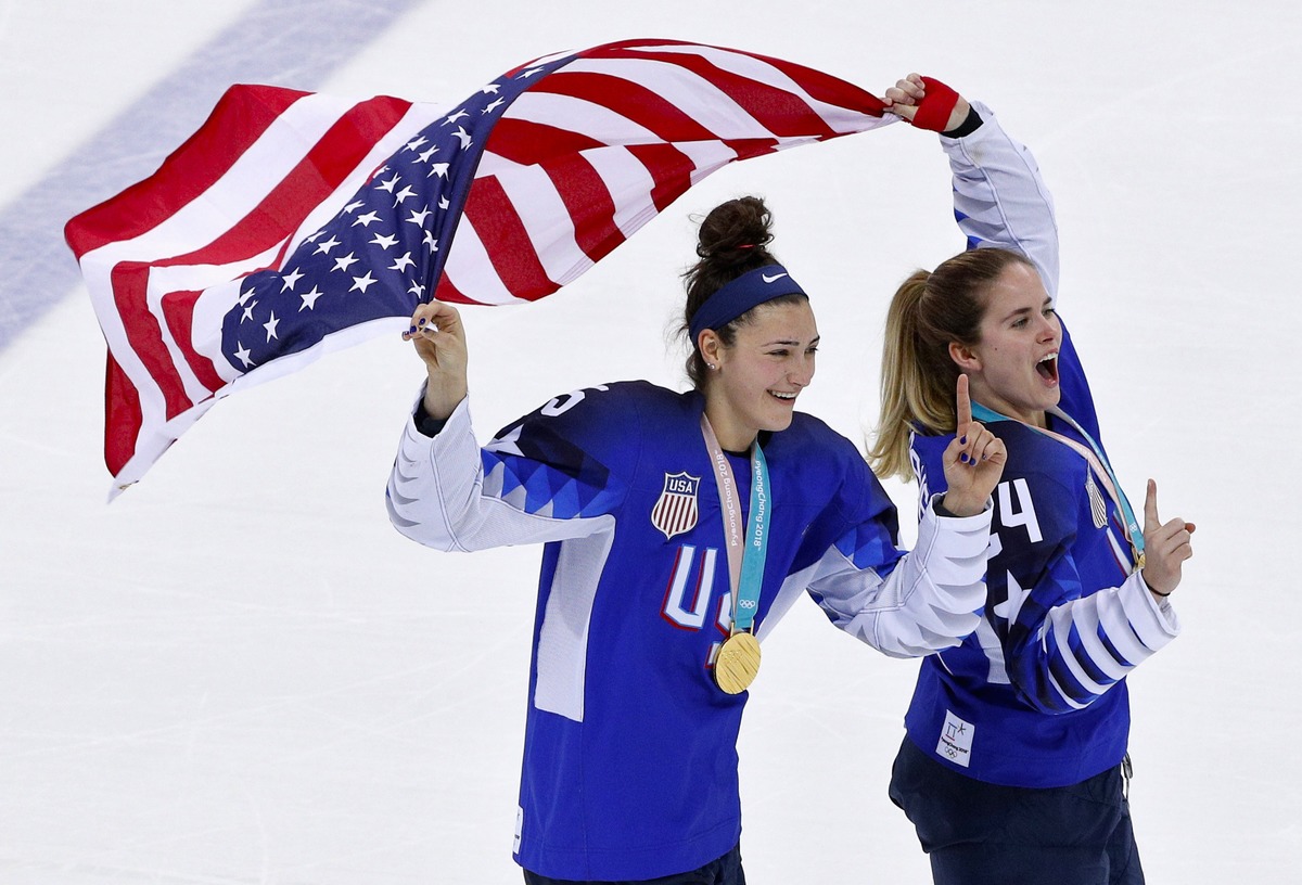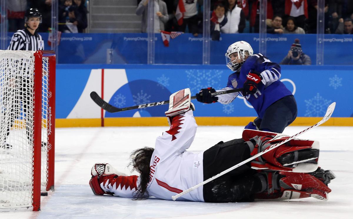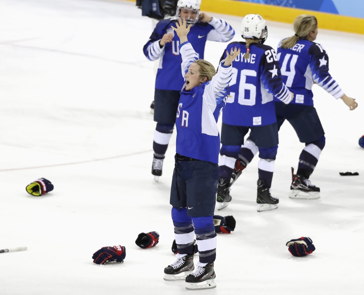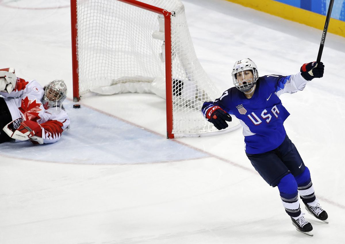 Ice Hockey - Pyeongchang 2018 Winter Olympics - Women's Gold Medal Final Match - Canada v USA - Gangneung Hockey Centre, Gangneung, South Korea - February 22, 2018 - Jocelyne Lamoureux-Davidson of the U.S. celebrates their win. REUTERS/David W CernyIce Hockey - Pyeongchang 2018 Winter Olympics - Women's Gold Medal Final Match - Canada v USA - Gangneung Hockey Centre, Gangneung, South Korea - February 22, 2018 - U.S. players celebrate with teammate and goalie Maddie Rooney after she made the winning save. REUTERS/Kim Kyung-HoonU.S. players celebrate their second goal. REUTERS/Grigory DukorIce Hockey - Pyeongchang 2018 Winter Olympics - Women's Gold Medal Final Match - Canada v USA - Gangneung Hockey Centre, Gangneung, South Korea - February 22, 2018 - Jocelyne Lamoureux-Davidson of the U.S. celebrates after scoring in the shootout. REUTERS/David W CernyIce Hockey - Pyeongchang 2018 Winter Olympics - Women's Gold Medal Final Match - Canada v USA - Gangneung Hockey Centre, Gangneung, South Korea - February 22, 2018 - Goalie Madeline Rooney of the U.S. makes a save in the final shootout attempt by Meghan Agosta of Canada. REUTERS/Brian SnyderAmanda Kessel of the U.S. hits the goalpost. REUTERS/Brian SnyderIce Hockey - Pyeongchang 2018 Winter Olympics - Women's Gold Medal Final Match - Canada v USA - Gangneung Hockey Centre, Gangneung, South Korea - February 22, 2018 - Jocelyne Lamoureux-Davidson of the U.S. celebrates after scoring the winning goal against goalie Shannon Szabados of Canada. REUTERS/Grigory DukorIce Hockey - Pyeongchang 2018 Winter Olympics - Women's Gold Medal Final Match - Canada v USA - Gangneung Hockey Centre, Gangneung, South Korea - February 22, 2018 - Goalie Maddie Rooney of the U.S. makes a save against Meghan Agosta of Canada to win the game. REUTERS/Kim Kyung-HoonIce Hockey - Pyeongchang 2018 Winter Olympics - Women's Gold Medal Final Match - Canada v USA - Gangneung Hockey Centre, Gangneung, South Korea - February 22, 2018 - Team USA players prior to the game. REUTERS/Brian Snyder