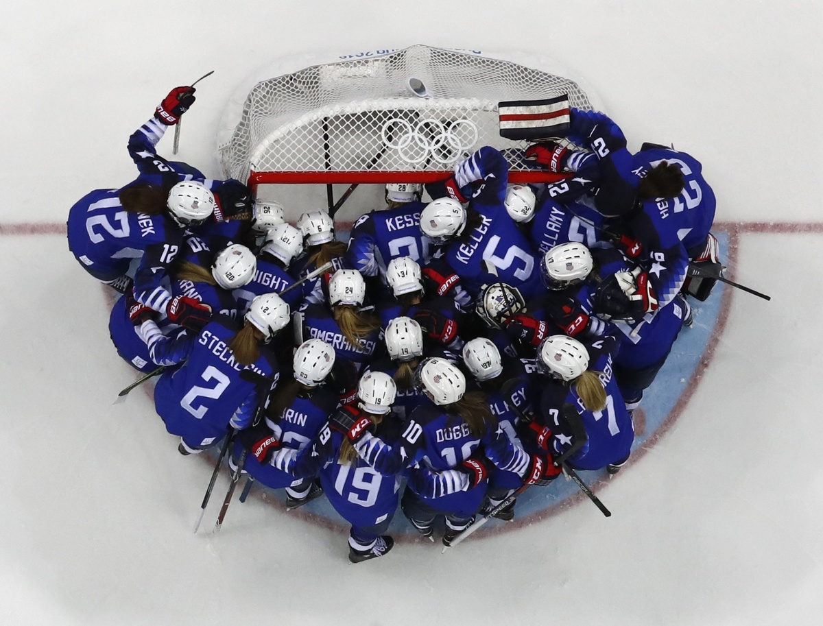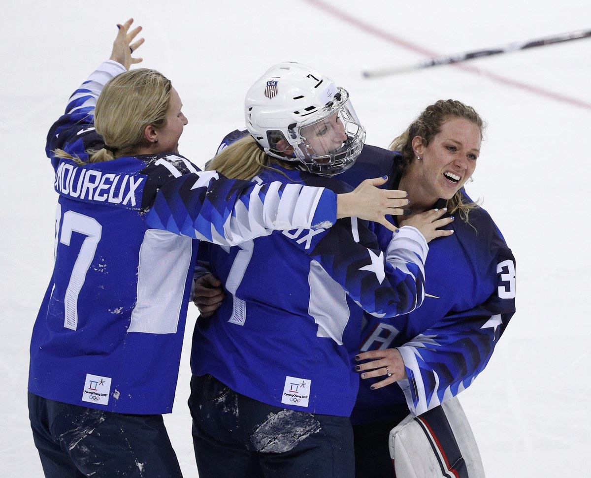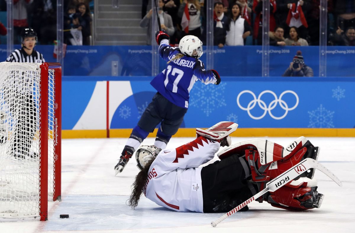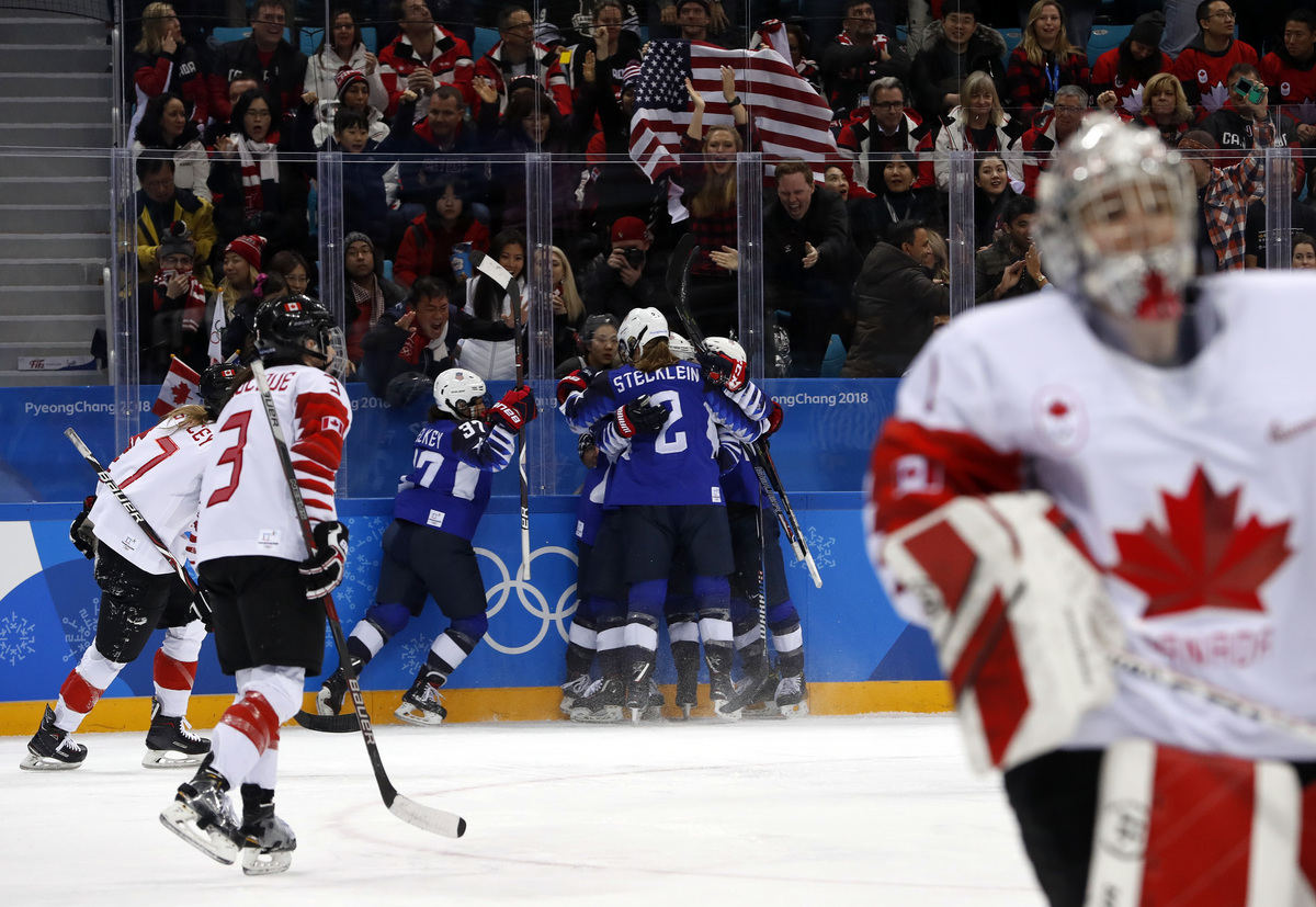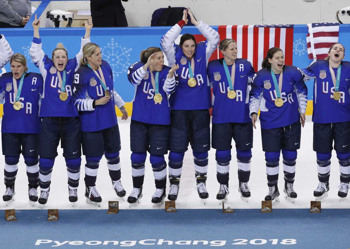 Ice Hockey - Pyeongchang 2018 Winter Olympics - Women's Gold Medal Final Match - Canada v USA - Gangneung Hockey Centre, Gangneung, South Korea - February 22, 2018 - Jocelyne Lamoureux-Davidson of the U.S. celebrates their win. REUTERS/David W CernyIce Hockey - Pyeongchang 2018 Winter Olympics - Women's Gold Medal Final Match - Canada v USA - Gangneung Hockey Centre, Gangneung, South Korea - February 22, 2018 - U.S. players celebrate with teammate and goalie Maddie Rooney after she made the winning save. REUTERS/Kim Kyung-HoonU.S. players celebrate their second goal. REUTERS/Grigory DukorIce Hockey - Pyeongchang 2018 Winter Olympics - Women's Gold Medal Final Match - Canada v USA - Gangneung Hockey Centre, Gangneung, South Korea - February 22, 2018 - Jocelyne Lamoureux-Davidson of the U.S. celebrates after scoring in the shootout. REUTERS/David W CernyIce Hockey - Pyeongchang 2018 Winter Olympics - Women's Gold Medal Final Match - Canada v USA - Gangneung Hockey Centre, Gangneung, South Korea - February 22, 2018 - Goalie Madeline Rooney of the U.S. makes a save in the final shootout attempt by Meghan Agosta of Canada. REUTERS/Brian SnyderAmanda Kessel of the U.S. hits the goalpost. REUTERS/Brian SnyderIce Hockey - Pyeongchang 2018 Winter Olympics - Women's Gold Medal Final Match - Canada v USA - Gangneung Hockey Centre, Gangneung, South Korea - February 22, 2018 - Jocelyne Lamoureux-Davidson of the U.S. celebrates after scoring the winning goal against goalie Shannon Szabados of Canada. REUTERS/Grigory DukorIce Hockey - Pyeongchang 2018 Winter Olympics - Women's Gold Medal Final Match - Canada v USA - Gangneung Hockey Centre, Gangneung, South Korea - February 22, 2018 - Goalie Maddie Rooney of the U.S. makes a save against Meghan Agosta of Canada to win the game. REUTERS/Kim Kyung-HoonIce Hockey - Pyeongchang 2018 Winter Olympics - Women's Gold Medal Final Match - Canada v USA - Gangneung Hockey Centre, Gangneung, South Korea - February 22, 2018 - Team USA players prior to the game. REUTERS/Brian Snyder