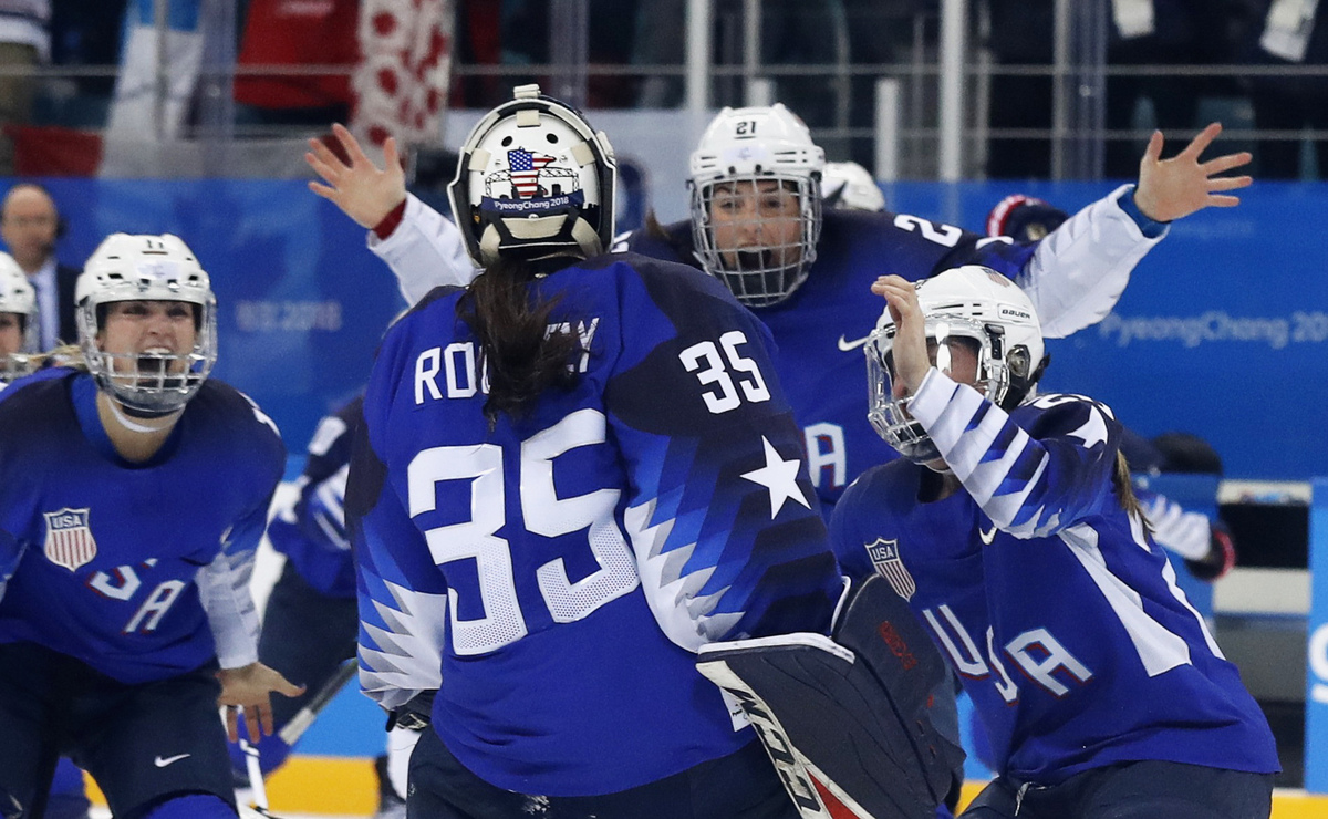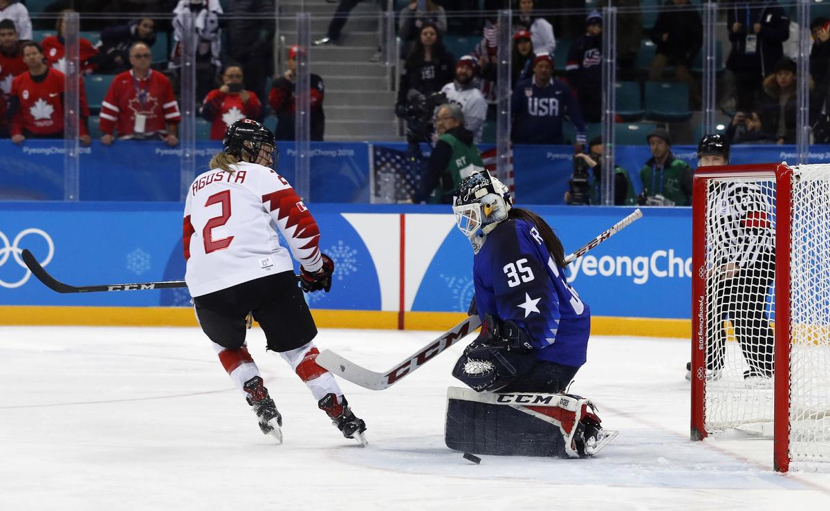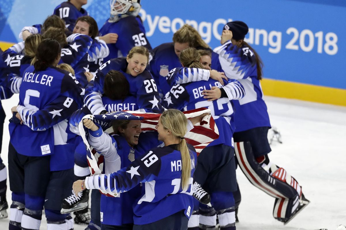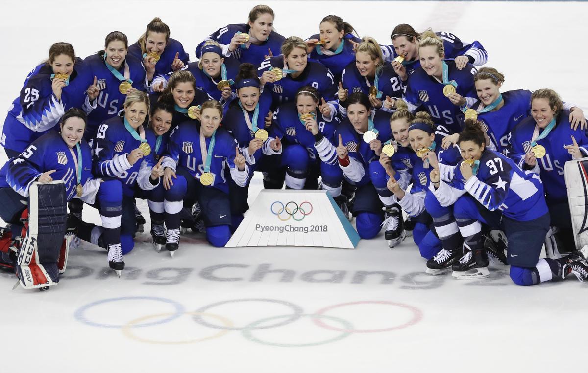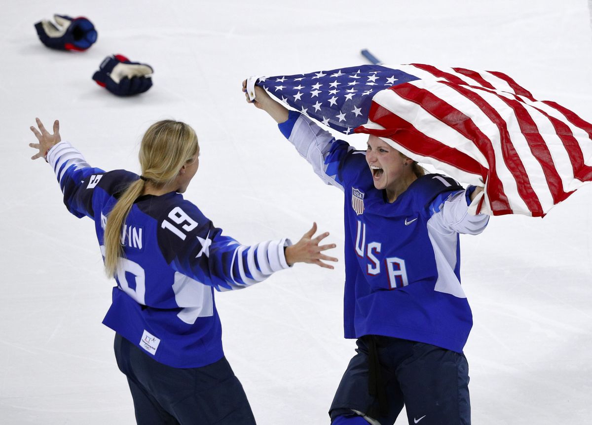 Ice Hockey - Pyeongchang 2018 Winter Olympics - Women's Gold Medal Final Match - Canada v USA - Gangneung Hockey Centre, Gangneung, South Korea - February 22, 2018 - Jocelyne Lamoureux-Davidson of the U.S. celebrates their win. REUTERS/David W CernyIce Hockey - Pyeongchang 2018 Winter Olympics - Women's Gold Medal Final Match - Canada v USA - Gangneung Hockey Centre, Gangneung, South Korea - February 22, 2018 - U.S. players celebrate with teammate and goalie Maddie Rooney after she made the winning save. REUTERS/Kim Kyung-HoonU.S. players celebrate their second goal. REUTERS/Grigory DukorIce Hockey - Pyeongchang 2018 Winter Olympics - Women's Gold Medal Final Match - Canada v USA - Gangneung Hockey Centre, Gangneung, South Korea - February 22, 2018 - Jocelyne Lamoureux-Davidson of the U.S. celebrates after scoring in the shootout. REUTERS/David W CernyIce Hockey - Pyeongchang 2018 Winter Olympics - Women's Gold Medal Final Match - Canada v USA - Gangneung Hockey Centre, Gangneung, South Korea - February 22, 2018 - Goalie Madeline Rooney of the U.S. makes a save in the final shootout attempt by Meghan Agosta of Canada. REUTERS/Brian SnyderAmanda Kessel of the U.S. hits the goalpost. REUTERS/Brian SnyderIce Hockey - Pyeongchang 2018 Winter Olympics - Women's Gold Medal Final Match - Canada v USA - Gangneung Hockey Centre, Gangneung, South Korea - February 22, 2018 - Jocelyne Lamoureux-Davidson of the U.S. celebrates after scoring the winning goal against goalie Shannon Szabados of Canada. REUTERS/Grigory DukorIce Hockey - Pyeongchang 2018 Winter Olympics - Women's Gold Medal Final Match - Canada v USA - Gangneung Hockey Centre, Gangneung, South Korea - February 22, 2018 - Goalie Maddie Rooney of the U.S. makes a save against Meghan Agosta of Canada to win the game. REUTERS/Kim Kyung-HoonIce Hockey - Pyeongchang 2018 Winter Olympics - Women's Gold Medal Final Match - Canada v USA - Gangneung Hockey Centre, Gangneung, South Korea - February 22, 2018 - Team USA players prior to the game. REUTERS/Brian Snyder