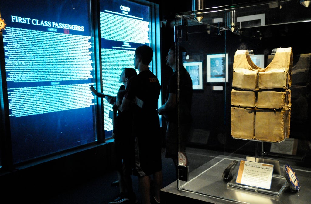 Guests receive boarding passes containing the names of actual passengers or crew members who were aboard the British passenger liner that sank in 1912 on its maiden voyage after hitting an iceberg.