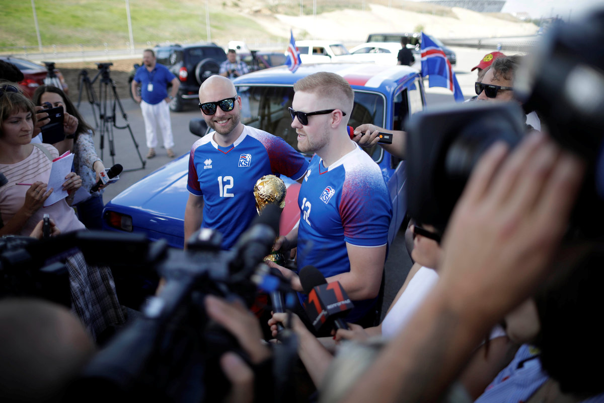 VOLGOGRAD, Russia (Reuters) - Two Iceland fans have paid homage to the spirit of the Vikings by travelling 5,000km (3,107 miles) in a Russian-built Lada to support their team at the World Cup.