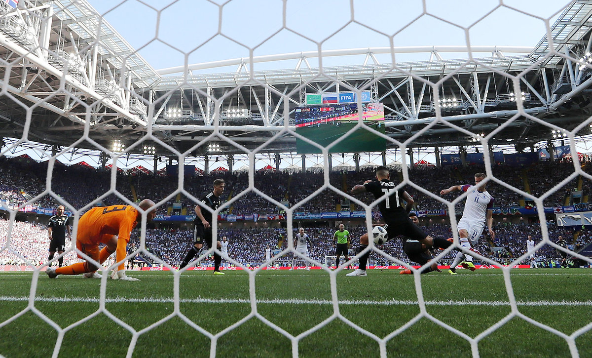 MOSCOW (Reuters) - Tiny Iceland made a stunning impact in their first-ever World Cup on Saturday when they held 2014 runners-up Argentina to a pulsating 1-1 draw but Lionel Messi's tournament began wretchedly as he saw his penalty saved by Hannes Halldorsson.