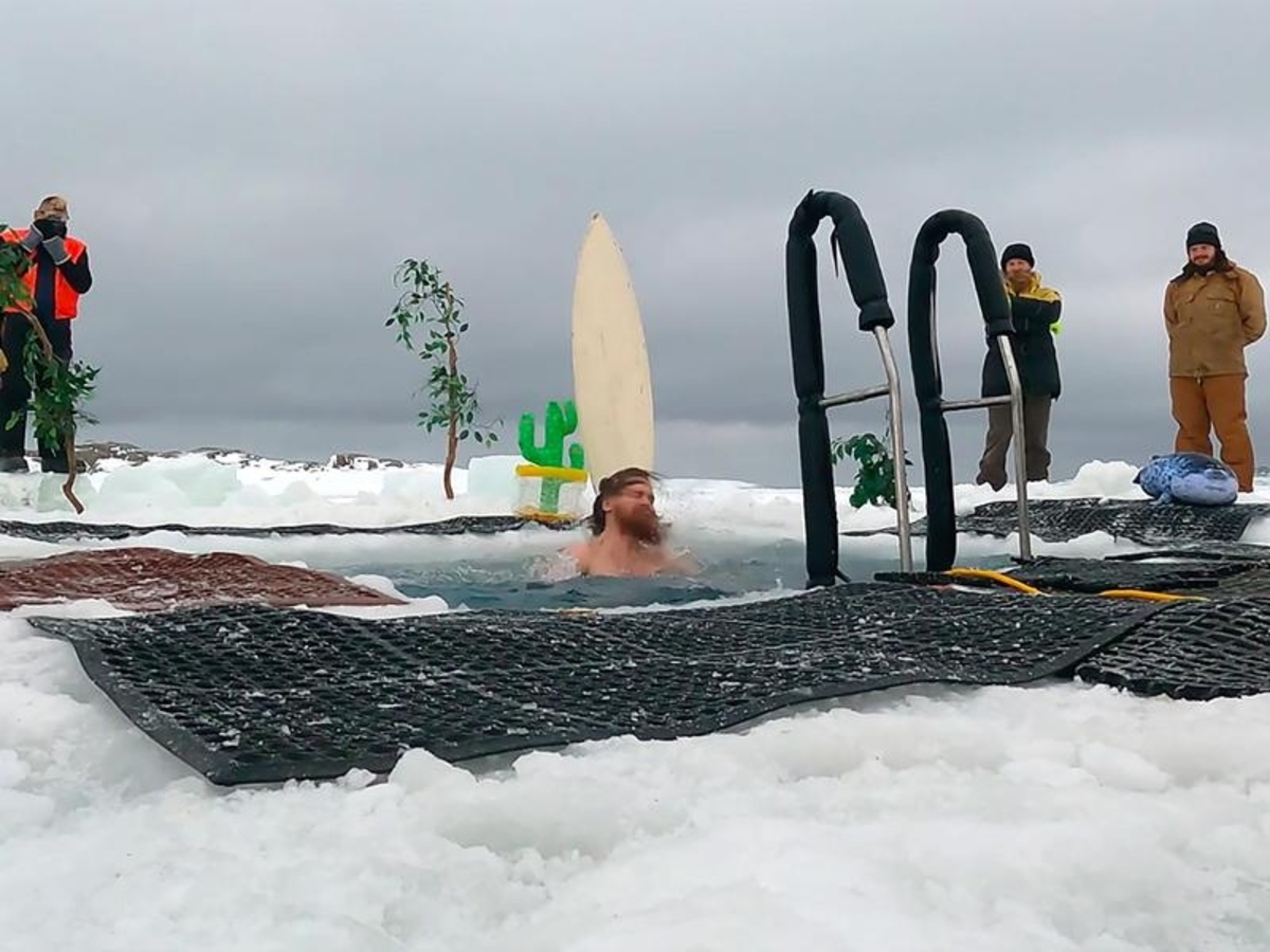 "The water temperature proved to be a bracing minus 2C, and the air temperature of minus 9C really got us moving," he said after the event, held before Monday's winter solstice.