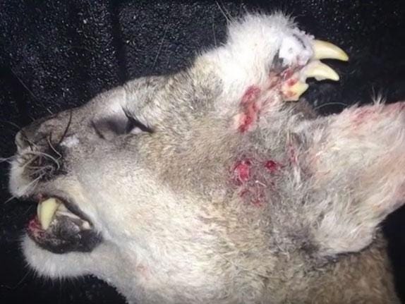 A mountain lion, killed in the US, has been found with a set of teeth growing from the top of its head, according to wildlife officials.