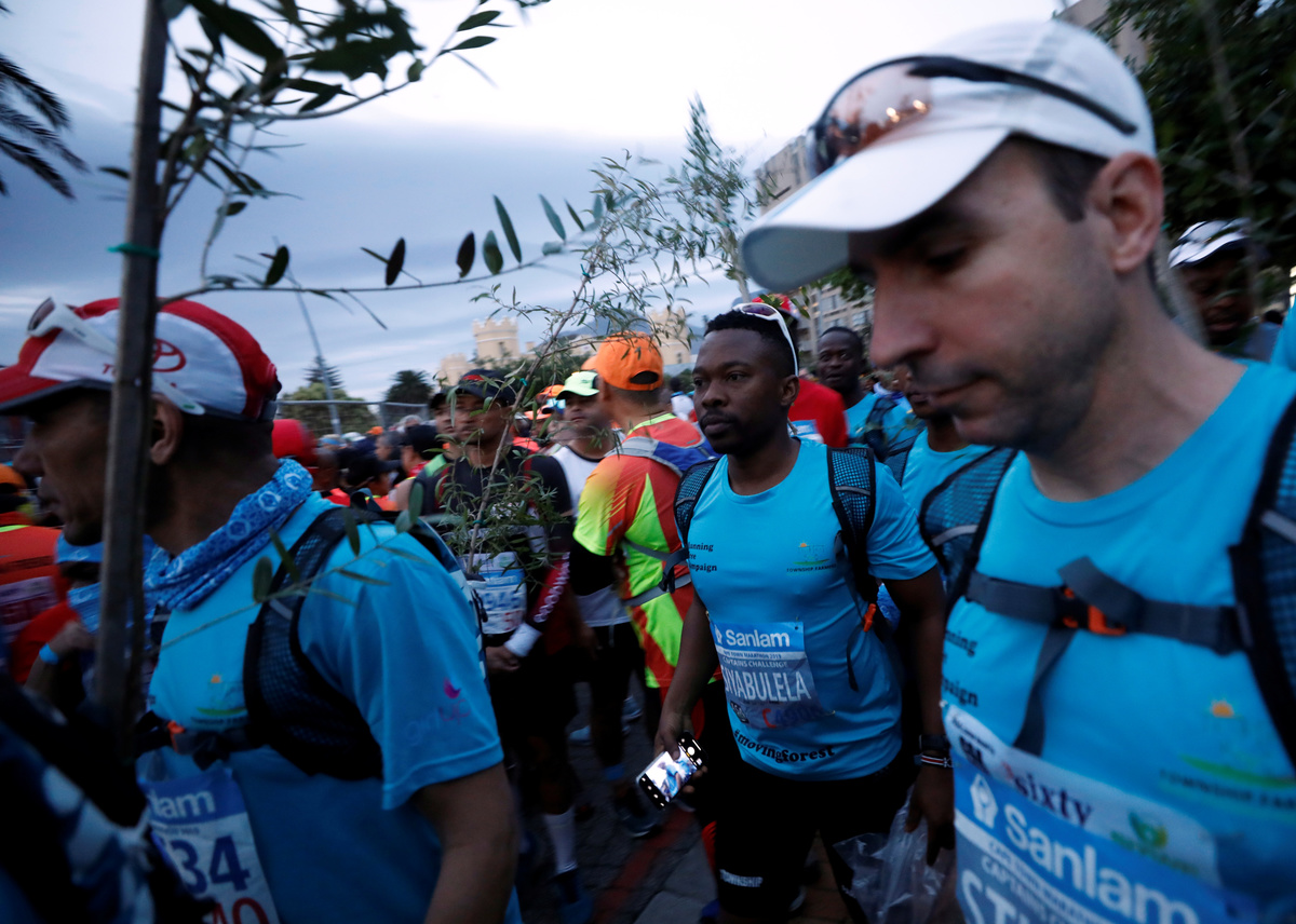NAIROBI (Reuters) - This Sunday in South Africa, an accountant, an entrepreneur and a boxing executive are among 20 friends running the Cape Town marathon - with saplings strapped to their backs.