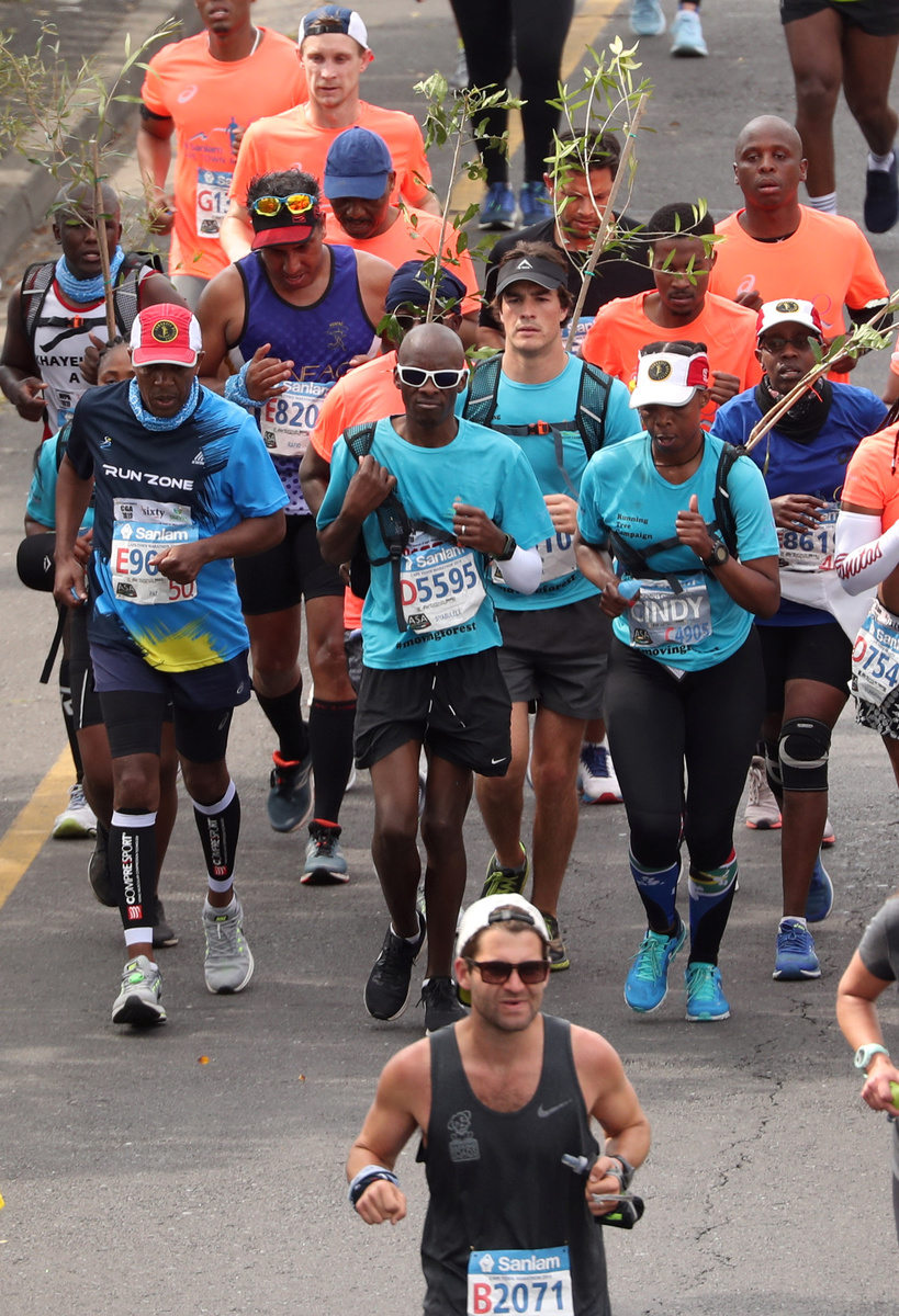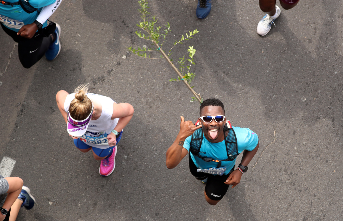 Activist and treegrower Siyabulela Sokomani, who is running carrying a wild olive, said the group of friends is raising cash to plant 2,000 trees in Khayelitsha, one of Cape Town’s biggest townships, where many of them come from.